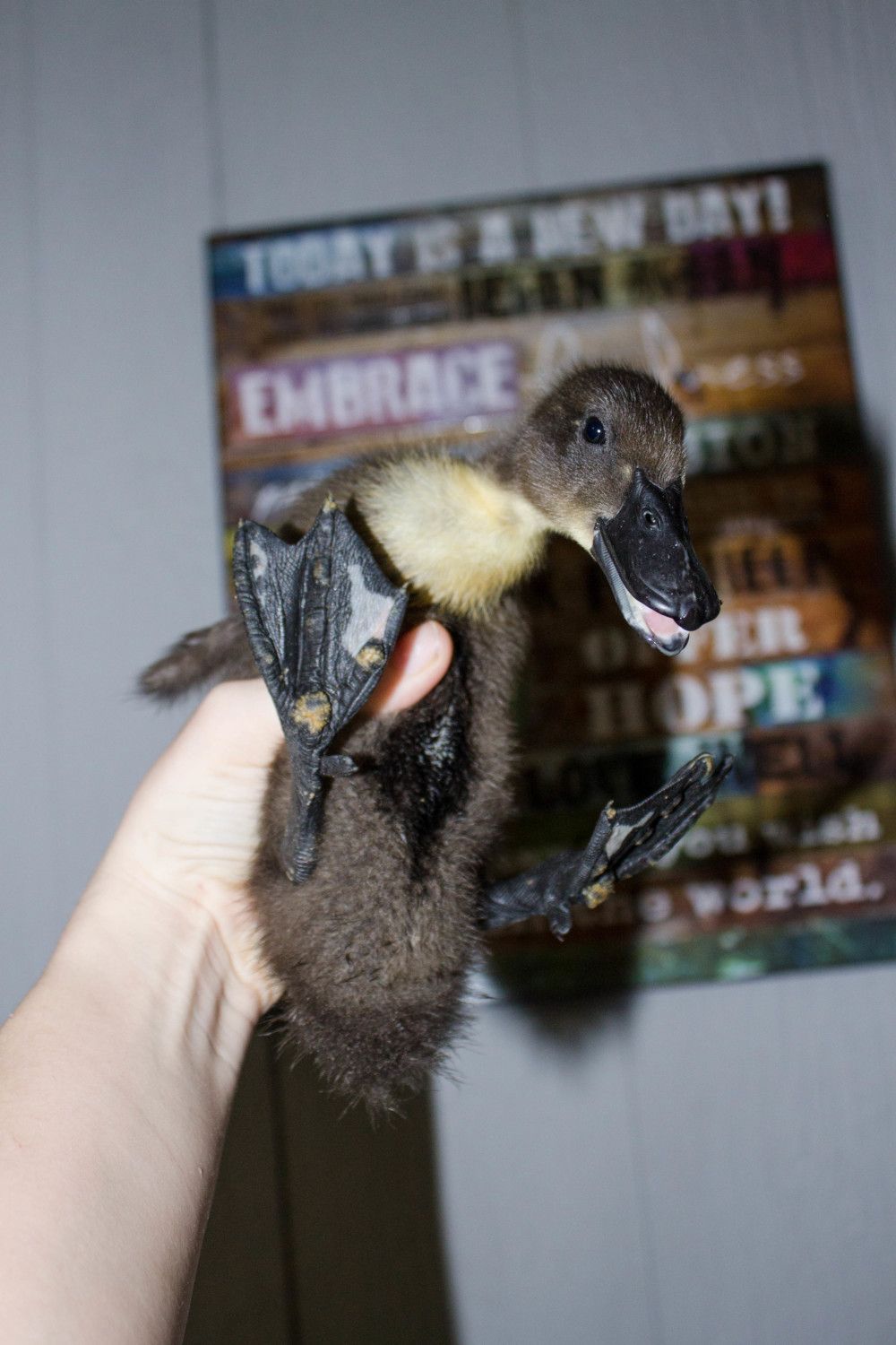 Lookie! My husband got me babies! I've been trying to get my hands on a female Cayuga to pair with my male Cayuga, but I haven't had any luck. I got some other Hens to go with my 2 adult drakes and now I'm going to raise these babies with my little chicks until they're old enough to merge with my other ducks. :) Hopefully I have at least one girl in here!