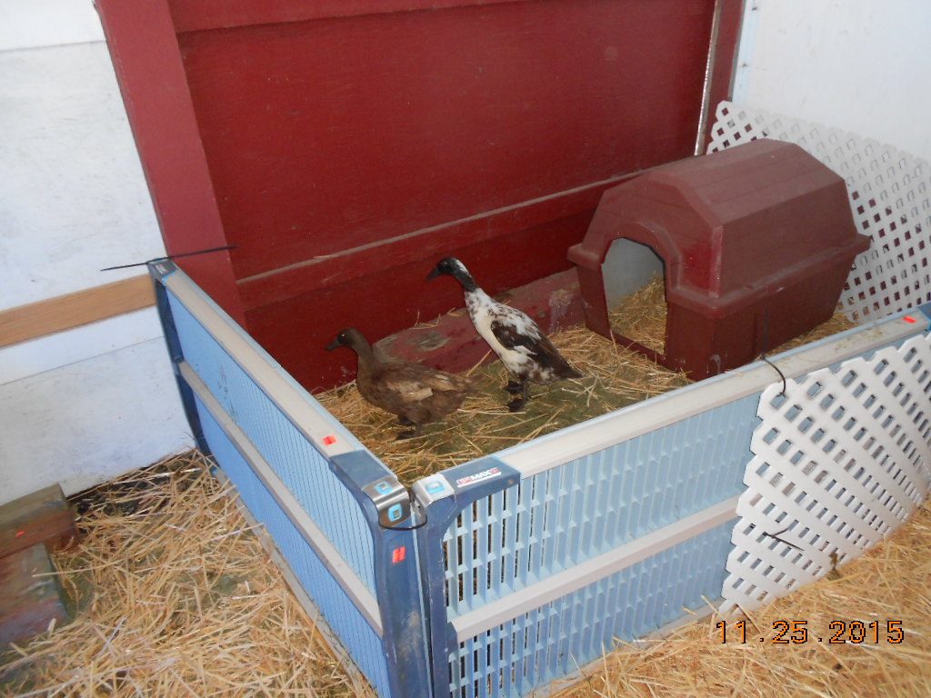 I use a watering station with a stew pot so the Runners can wash up. I put sawdust pellets in the bottom to absorb the water. In winter, in the morning I put a fresh pot of water in the watering station. For about an hour, the flock uses it to wash up in. Then I give them another fresh pot of water and they drink from that for the rest of the day.
