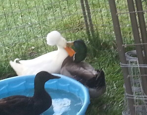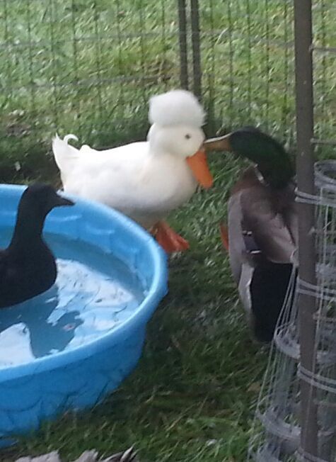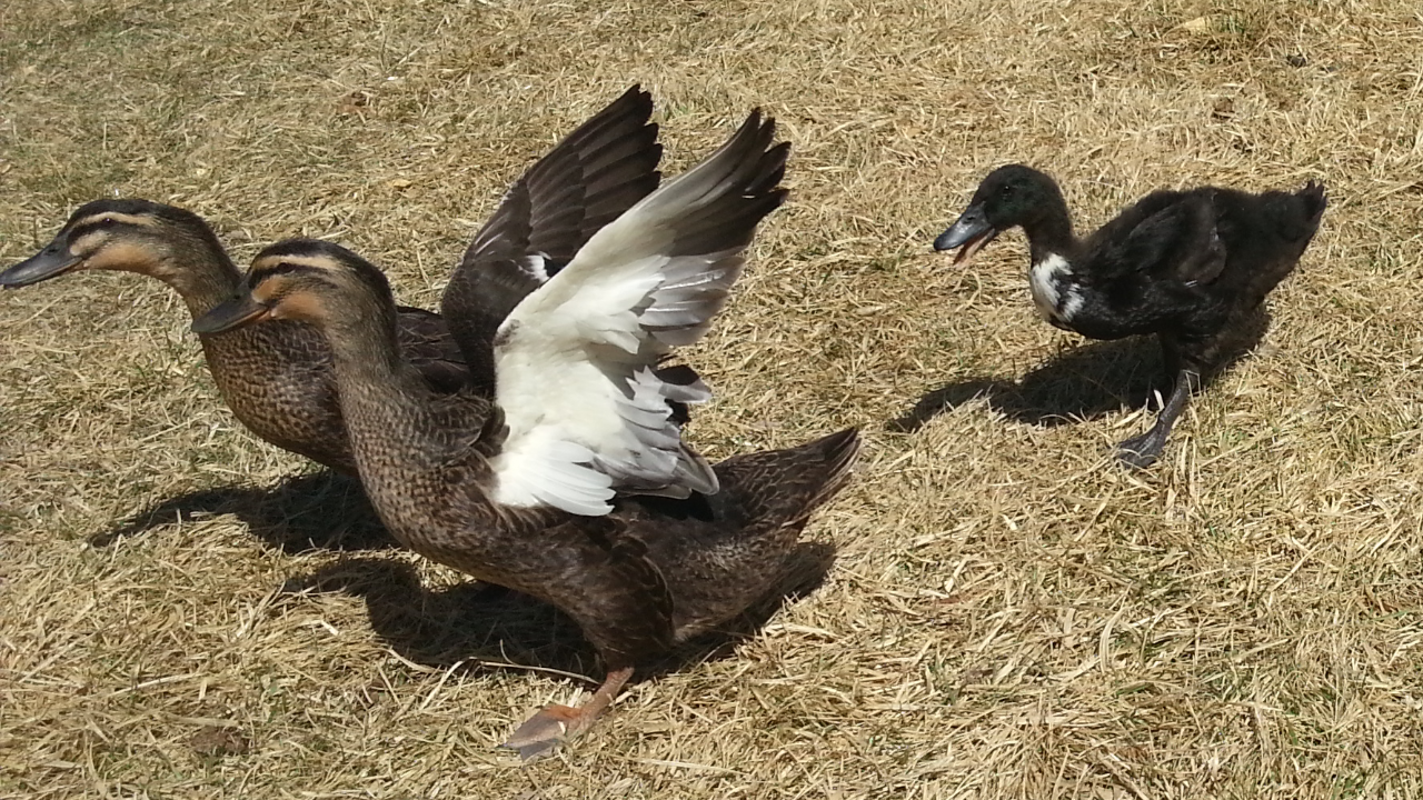 2: The littles (most of my flock) joined the bigguns (Tella & Ettie). The brooder kids beat up the older ducks (but not too bad, they just let the old ones know that it was their yard).