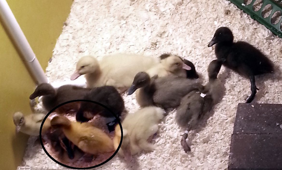1: Rhiannon joined the brooder 1 week late. The other 'lings were only 1-1/2 weeks old and were still pecking each other in the heads establishing order. 1 more 'ling pecking and getting pecked didn't make any difference.