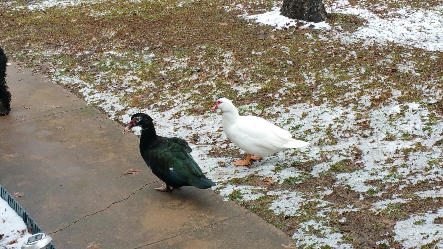 Welcome to BYC! Nice looking ducks. -KathyWe have two Muscovy ducks. Still not sure if we have a male and female yet. Scooter (dark one) is always being chased by the Pekin drake and he is about 6 months old. Bought Maggie (white one) from a breeder and was told she is around same age. We think she is female and has laid some light green eggs, we think. They are so fun and are friendlier than the Pekins. They love to come and eat grapes from your hands. They seem to have some type of ritual where they bob their heads up & down and open & close their mouths while wagging their tales.![]()