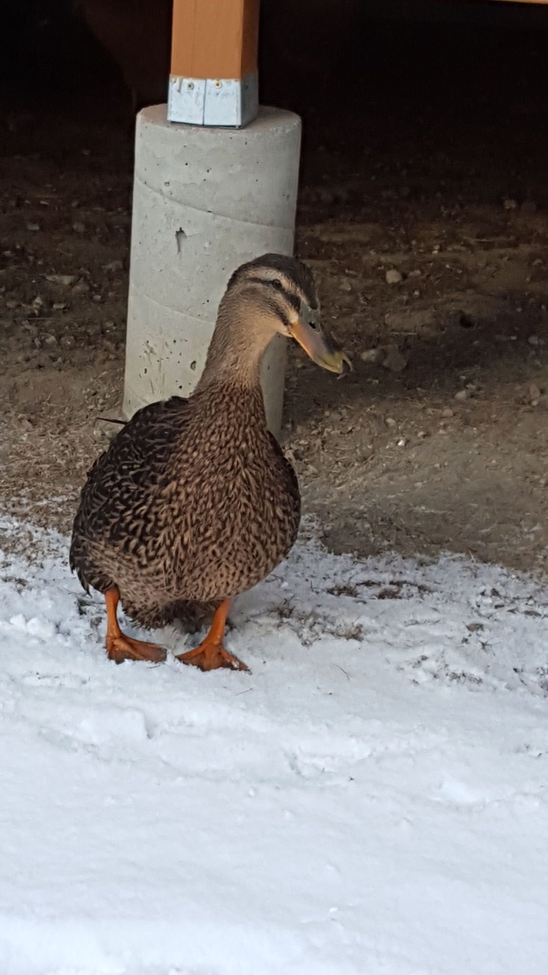 How do you keep your water from freezing in Montana?She is a real sweetheart and our only duck that doesn't mind being picked up. She's not crazy about the snow but will make a dash across it to get to the porch and hang out underneath it. And no matter how cold it gets, all the ducks take their morning bath!