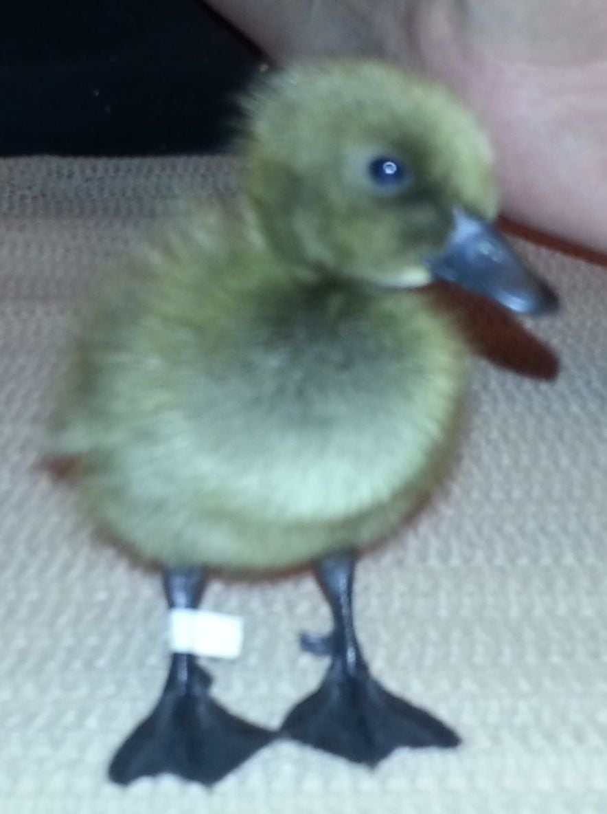 Are the legs and feet dark too??? The only duck I have that would have that dark of a bill and that light of a fuzz would be a Chocolate runner, but I haven't had everything. Does it stand upright sometimes??? In her earliest pics our Chocolate looked a little dirty yellow in fuzz and had a black bill and legs.