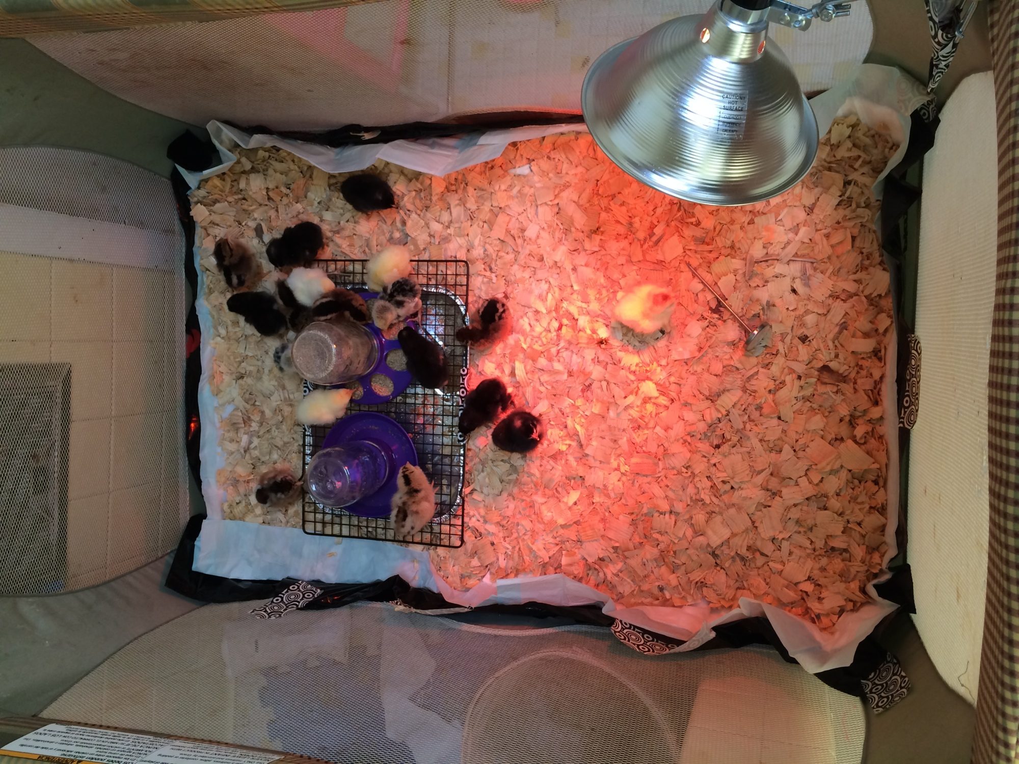 Our Brooder is in an old baby playpen/ crib