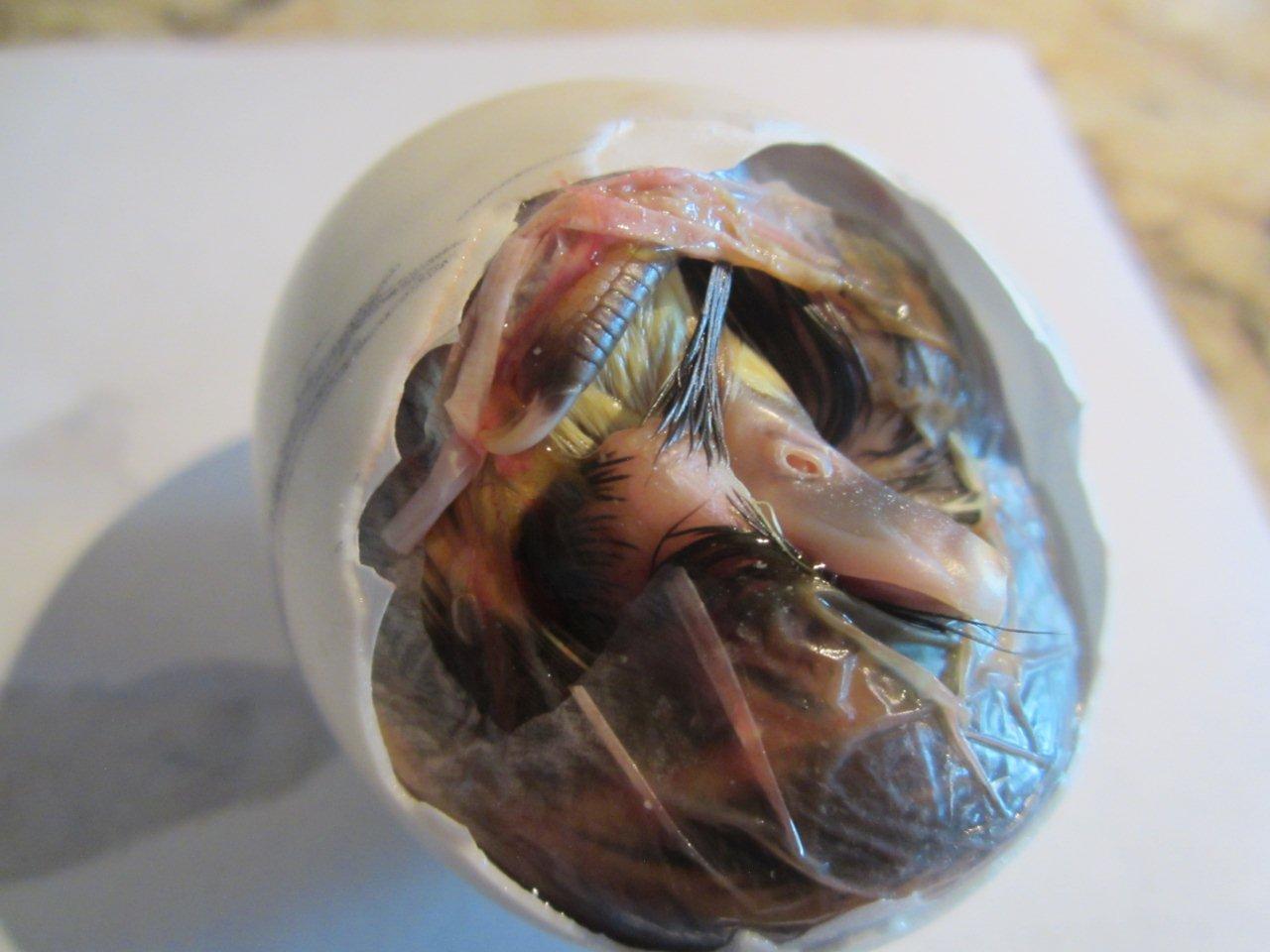 Here it is after I moistened the membrane. Note that there are no veins visible, which is a pretty good indicator that it was ready to hatch.