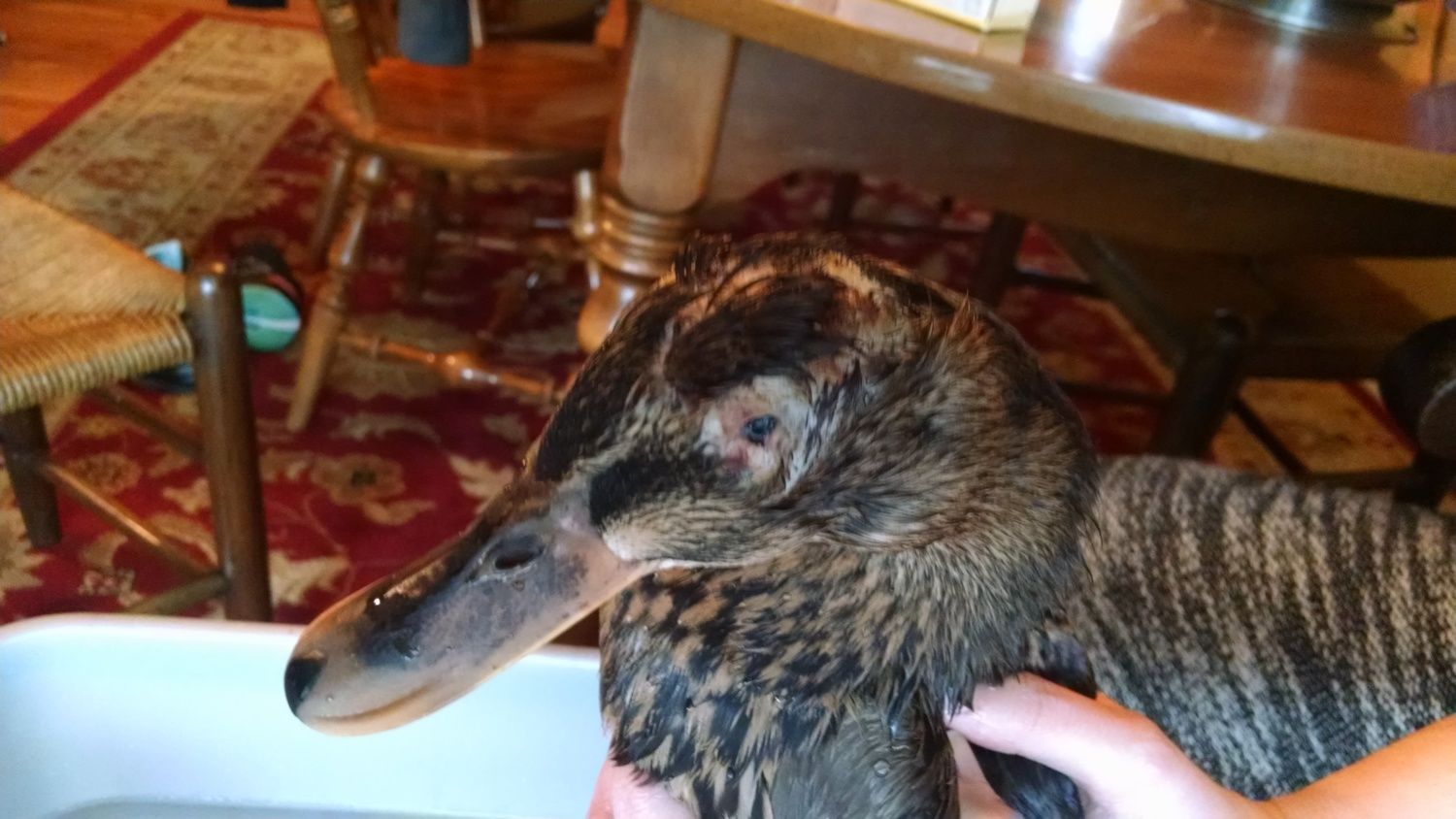 Just a few weeks ago my 10 month old mallard's left eye became bubbly. I treated it with warm salt water which I applied 2 times daily. It looked better for a few days. The eye seemed fine, and then two days later it returned and looked worse than before.
