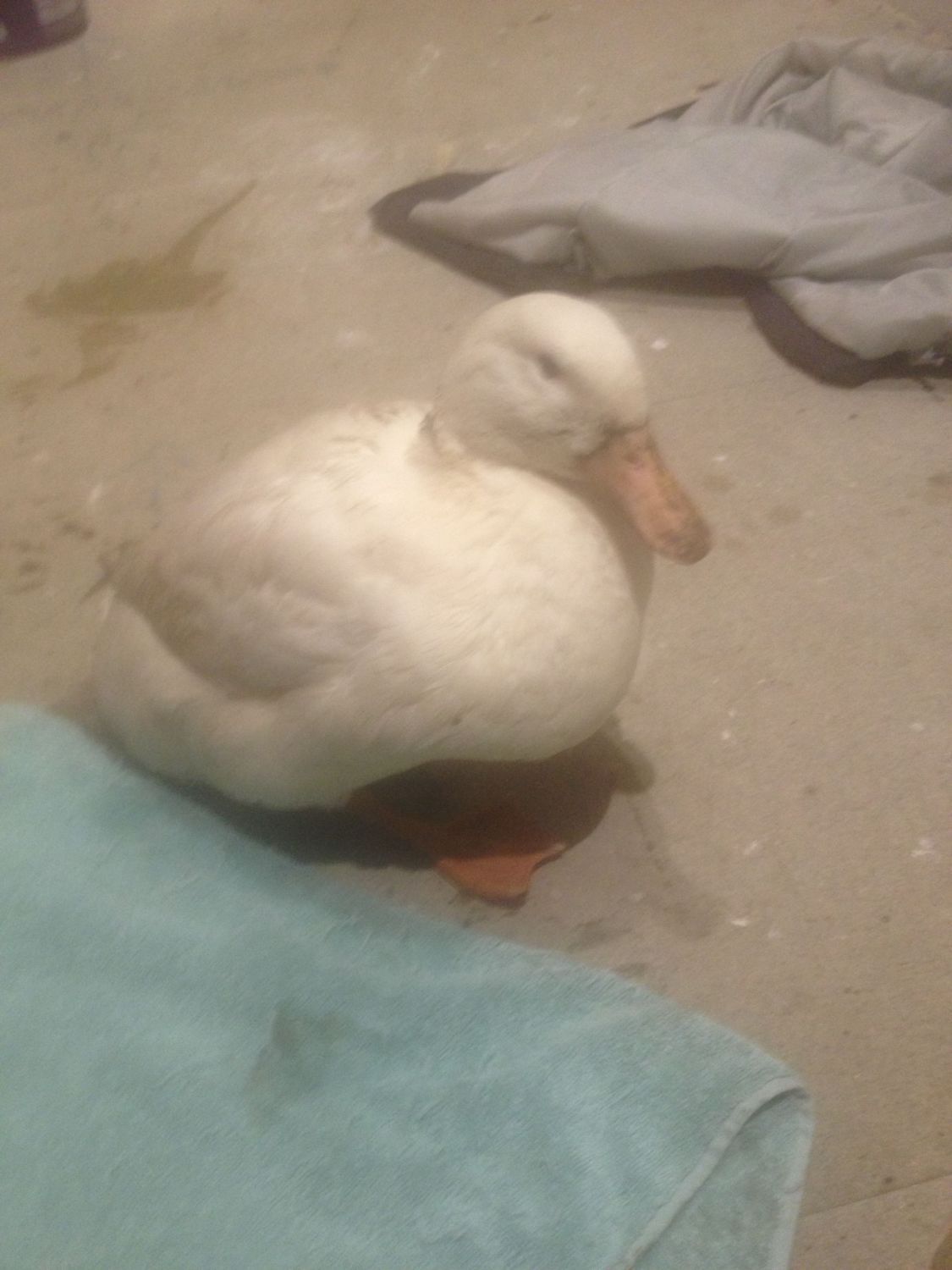 By then the other ducks were all up, she could her them and started stressing again. She's still a little wobbly on her feet and still keeps falling backwards. So I've let her back out with the others to calm her down and was going to bring her back in tonight and try the salt bath again.
