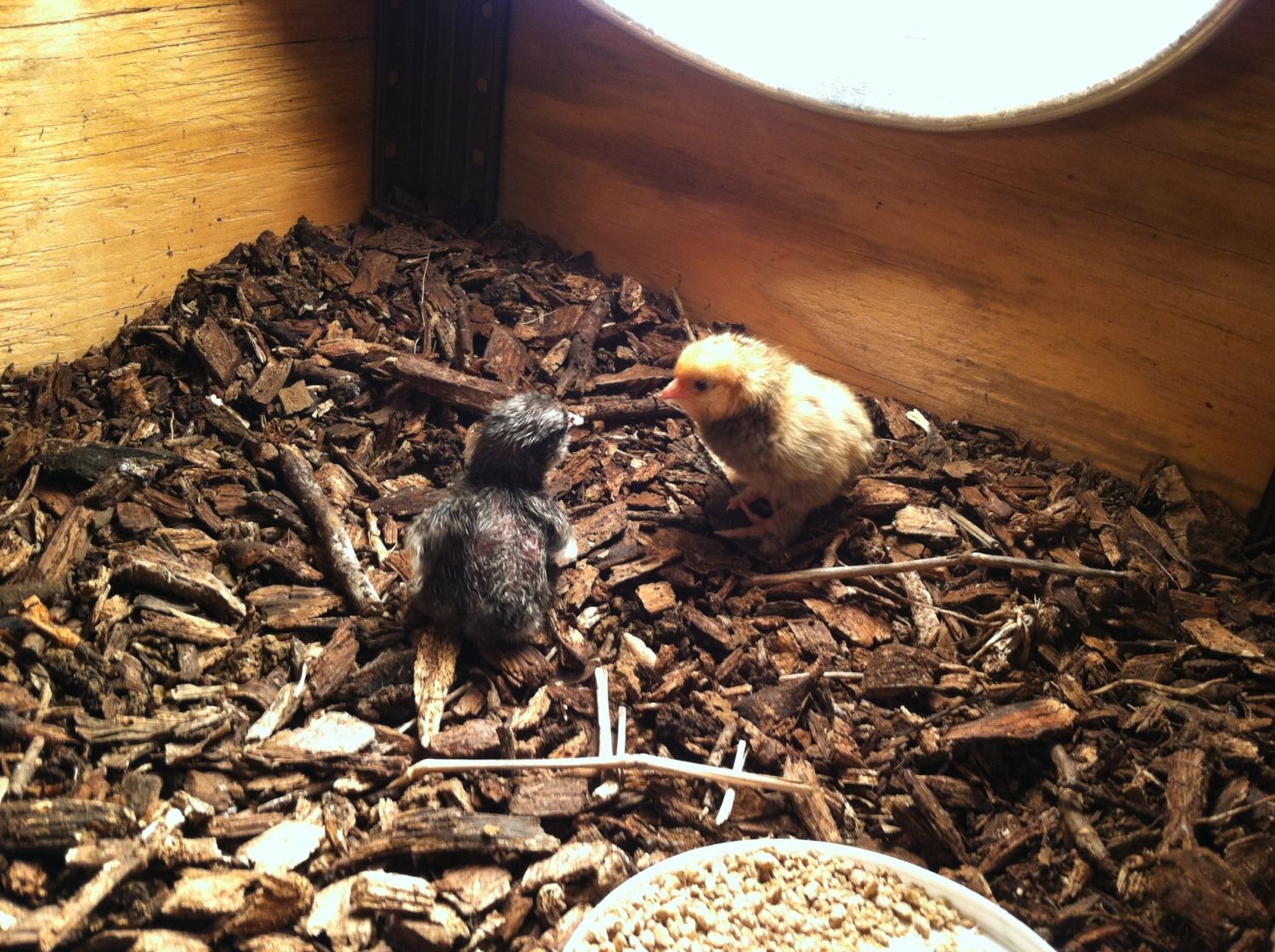 e Soon as it fluffs up I'll put it in the brooder with number 1. She starts crying if I leave her alone very long.