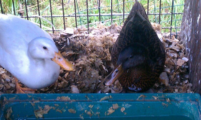 We have all male ducks and that means separating them into groups in the spring when the testosterone hits. So we built a duck duplex. There are 2 doors and an internal wall that goes up just beyond their heads. That way they can share the heat/fresh air and hear each other but not fight.![]()
