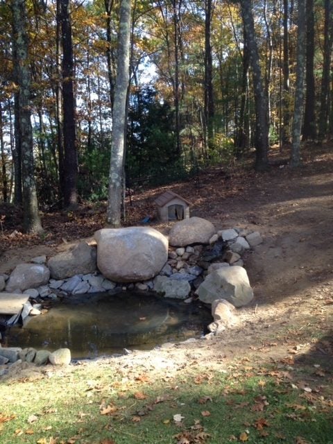 How high are the sides? And how do you drain it? It might be possible to build up the one side, where the drain isn't, maybe using straw bales, rocks or loads of dirt to get it built up to the rim.