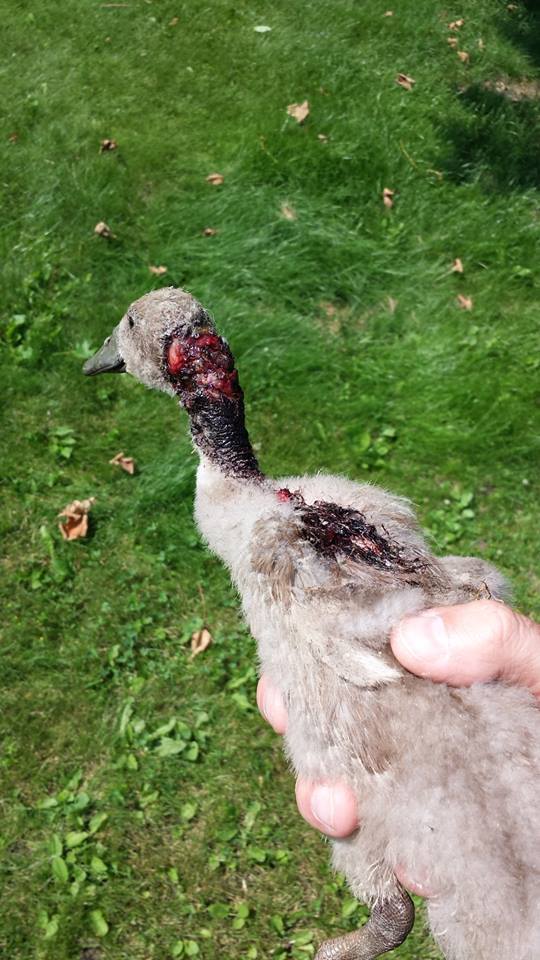 Day 7 - after quite a few baths and social time with another smaller sized duckling his big scab finally peeled off and looked AWESOME. The scab just about made us throw up.