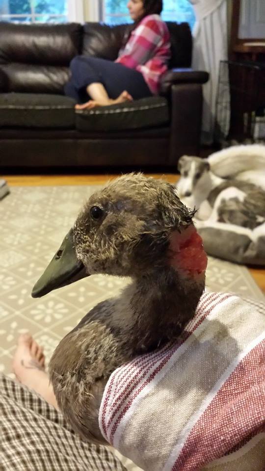 Day 2, he is isolated because he is quite a few weeks younger than any other ducklings we have. We spent a lot of couch time together.