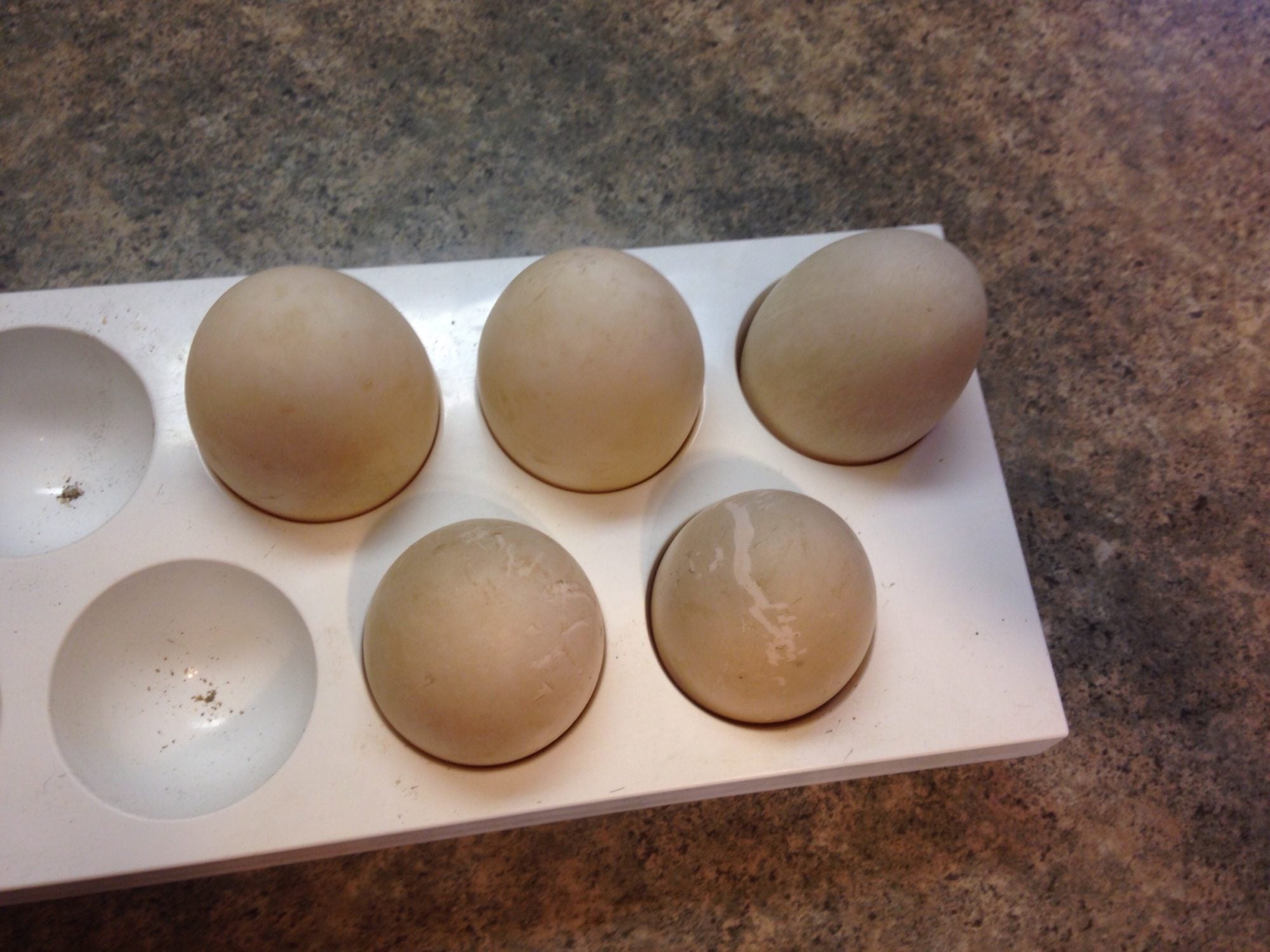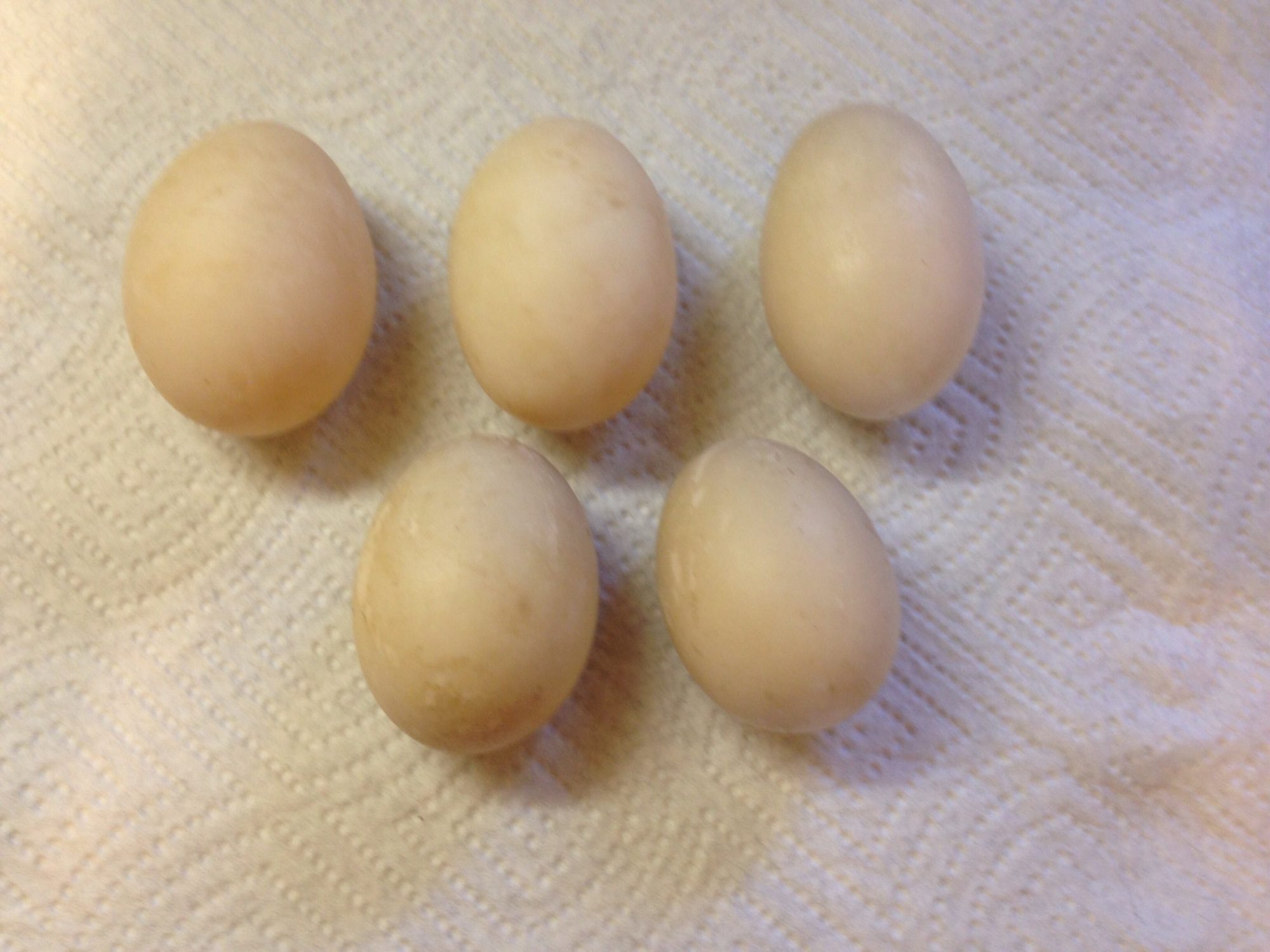Some exciting news! One of my four month old girls is laying already! She just started A few days ago. I wasn't expecting eggs from them for at least another two months, if not longer. I'm not sure who it is though. Could be either my cayuga female, WH female or my fawn and white runner female. The two other new girls are only three months old, so it can't be them. So far, I've collected three elongated eggs and two short squatty eggs with a grayish tinted bloom. I'm suspecting the Cayuga. The eggs are much smaller than my Pekin's eggs were. Maybe two girls are laying? I don't know, but my pekin stopped laying a month ago, and I'm happy to have fresh duck eggs again!