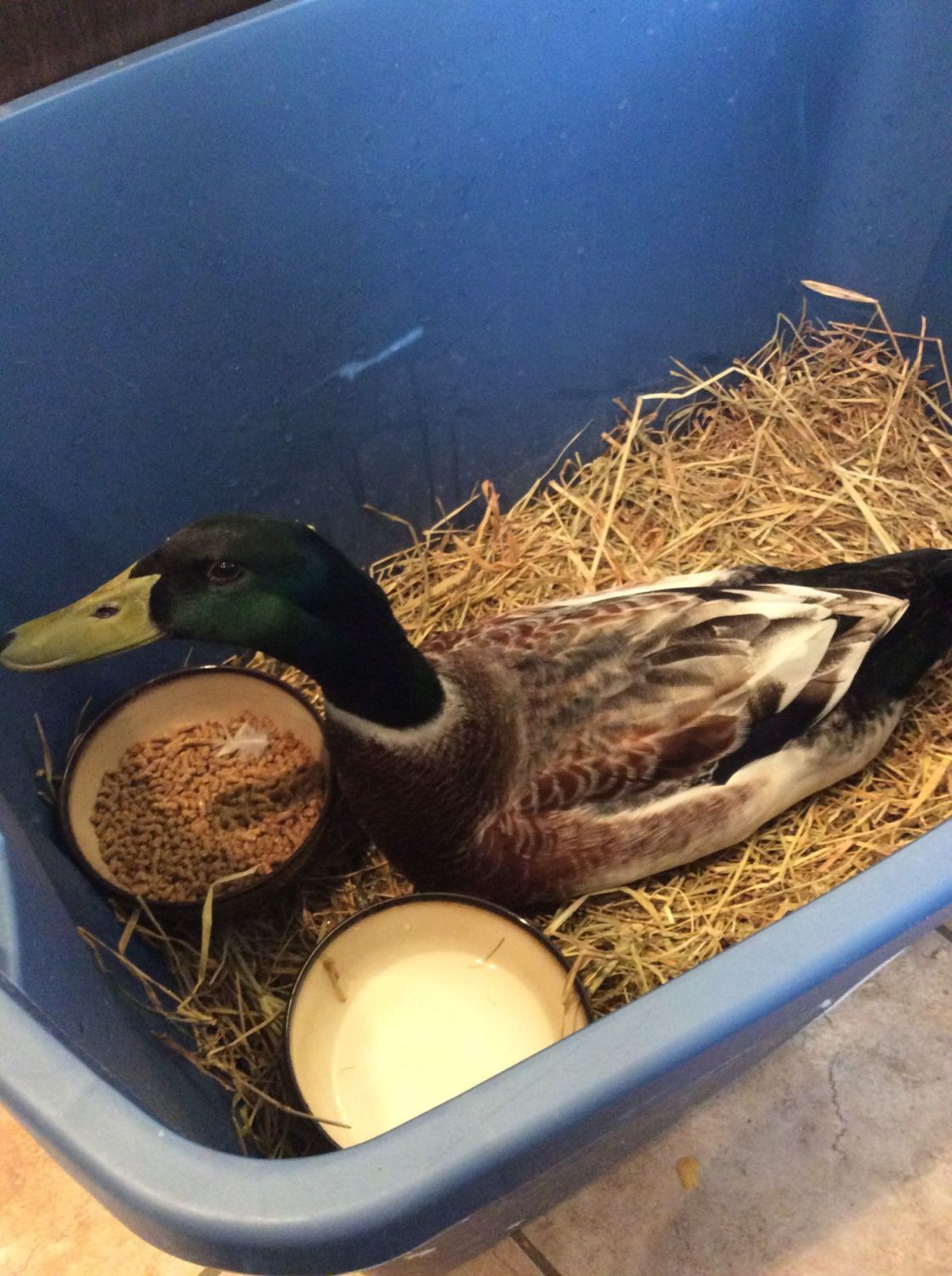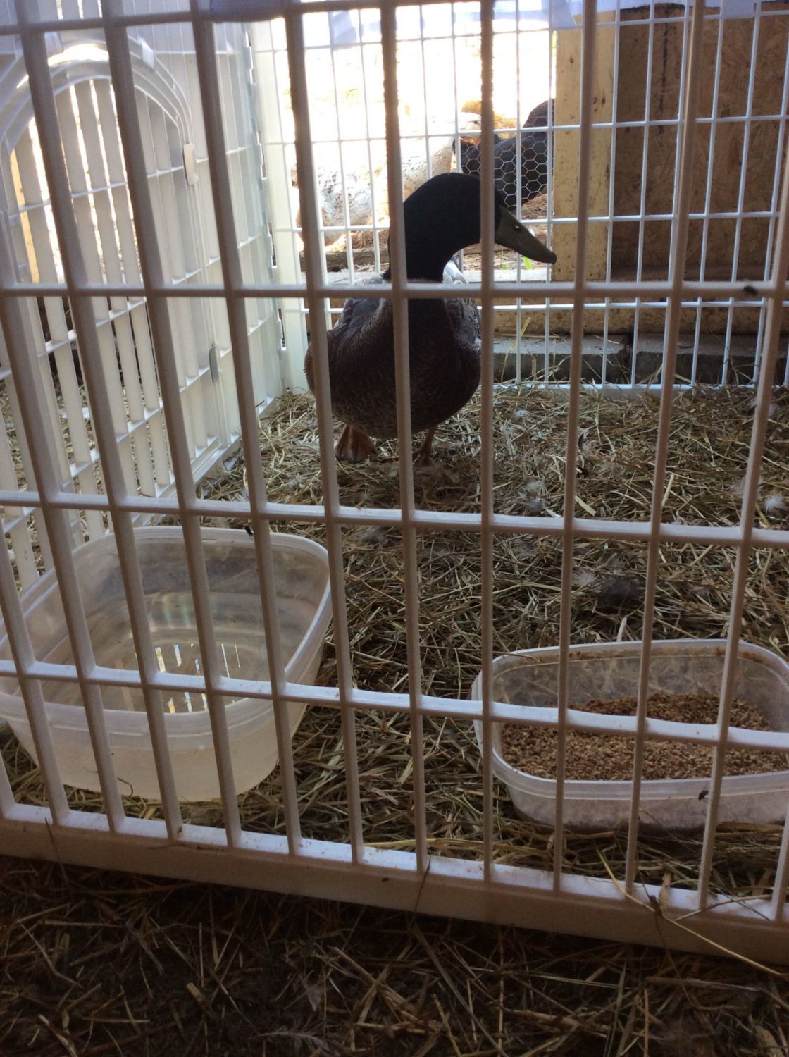 You could also keep her in a large storage bin in your house and see how she does. Just watch her and see if she's eating. If she's not eating, then she's sad because she misses her ducky friends.