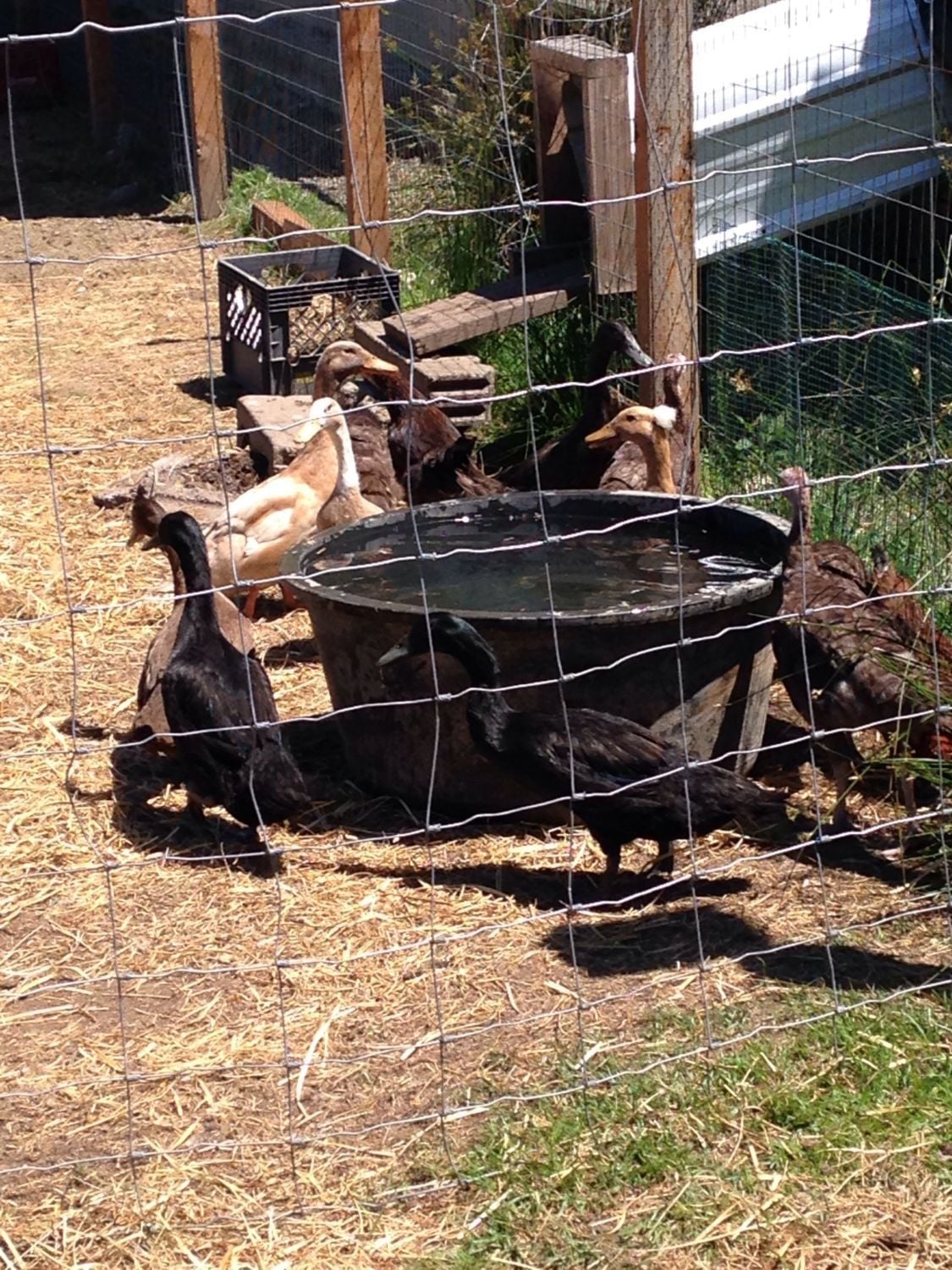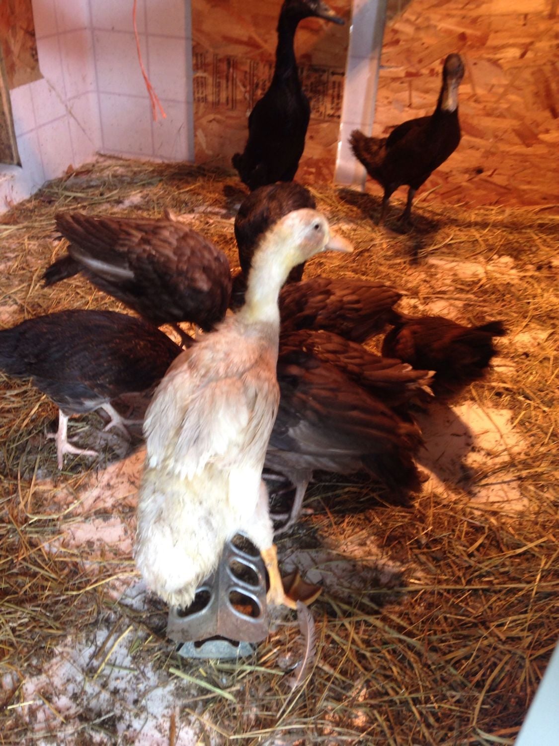 She is on the back side of the water trough. She is full size finally and took a couple more weeks to feather in. The kids and I are so thankful she is a normal duck now. Thank you for the help!!