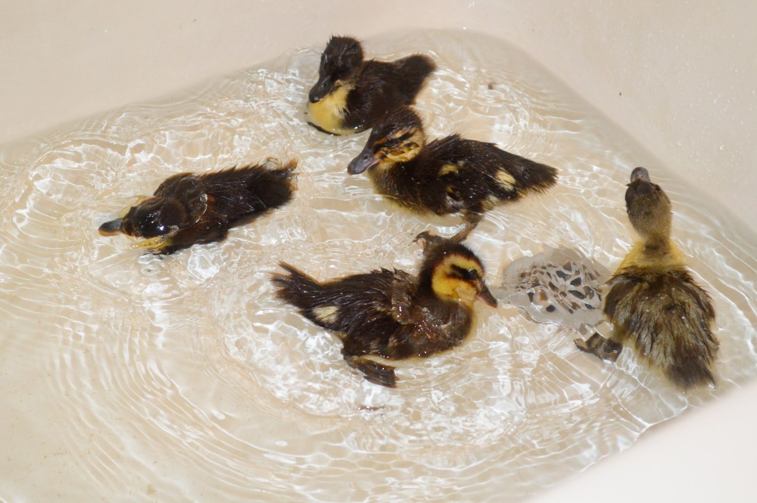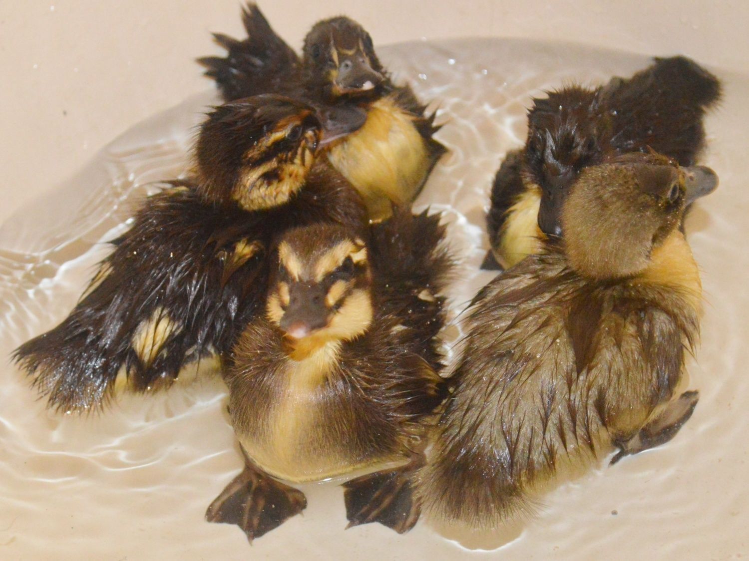 Apr 18, 2015 #108 Celtlore Chirping 10 Years Joined Apr 10, 2015 Messages 60 Reaction score 9 Points 91 Location Alabama U.S.A. Nemo the Rouen looking at the camera. The ducklings second swim in the tub. Two Rouens and 1 Blue Swedish and 2 Black Swedish. Last edited: Apr 18, 2015