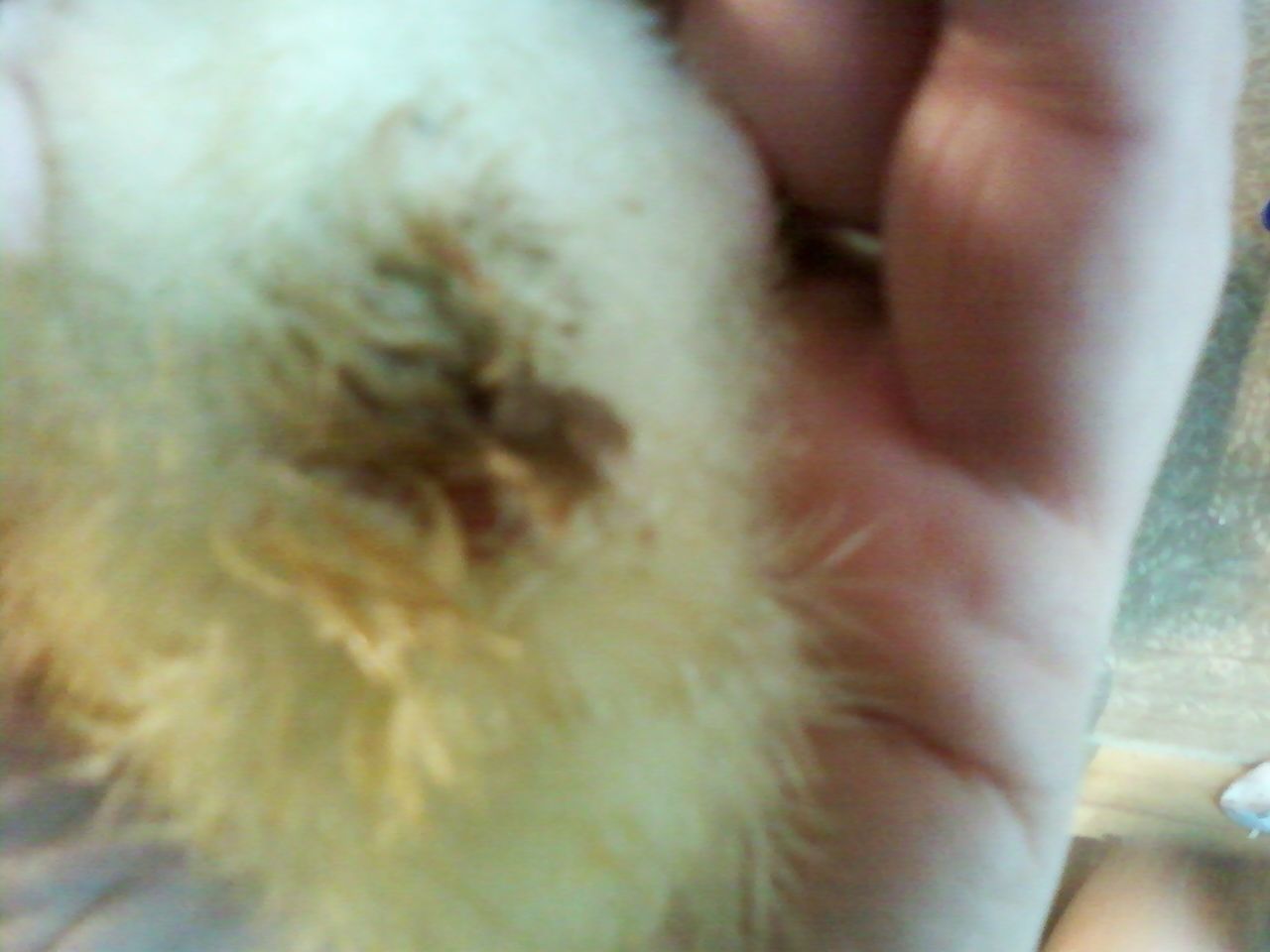This is not great either, but I can see his vent now and there is poop coming out!!! It's sticky looking no doubt because of poop residue, but also from the bacitrin to keep it moist. I wish I'd taken a picture last night. It was like a stiff gel curly twist - like the kind you see sticking straight up on a baby, and I could not pull the feathers apart, even when it had been soaked. There was no poop in, on or around it. Just a solid-feeling twisted down-mass. I was afraid that he was male and sticking out and stuck dry.