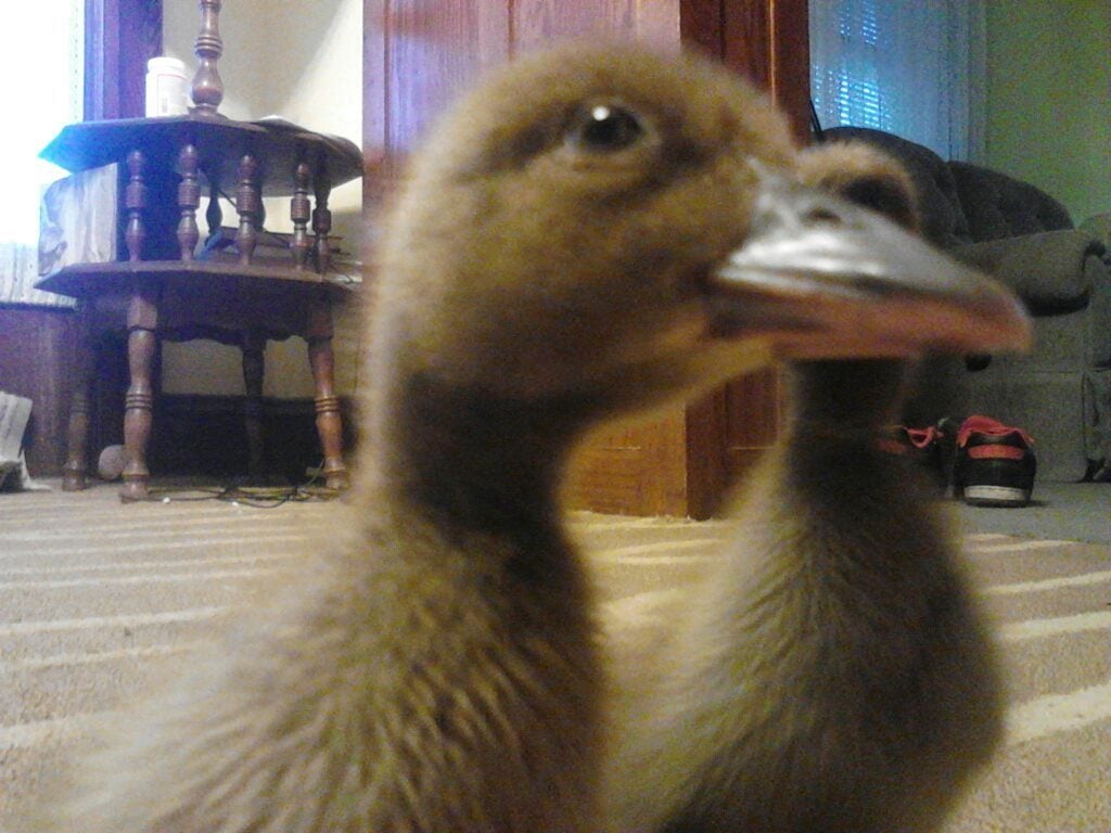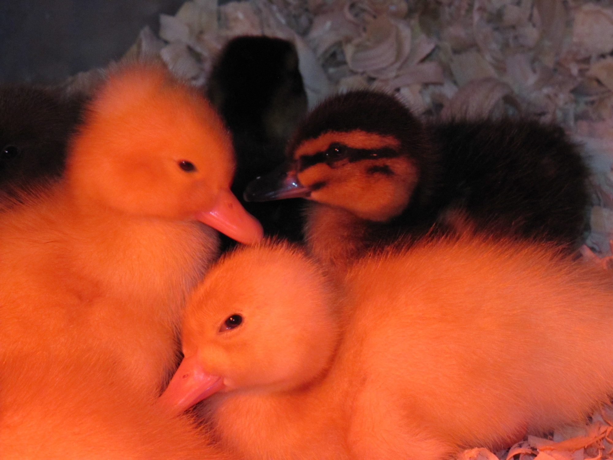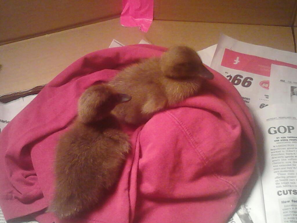 These are 2 of my mallard ducklings. My dog, Jazzy, got 1 of them b/c I left the lid open for a second and she grabbed one. She's a real killer!