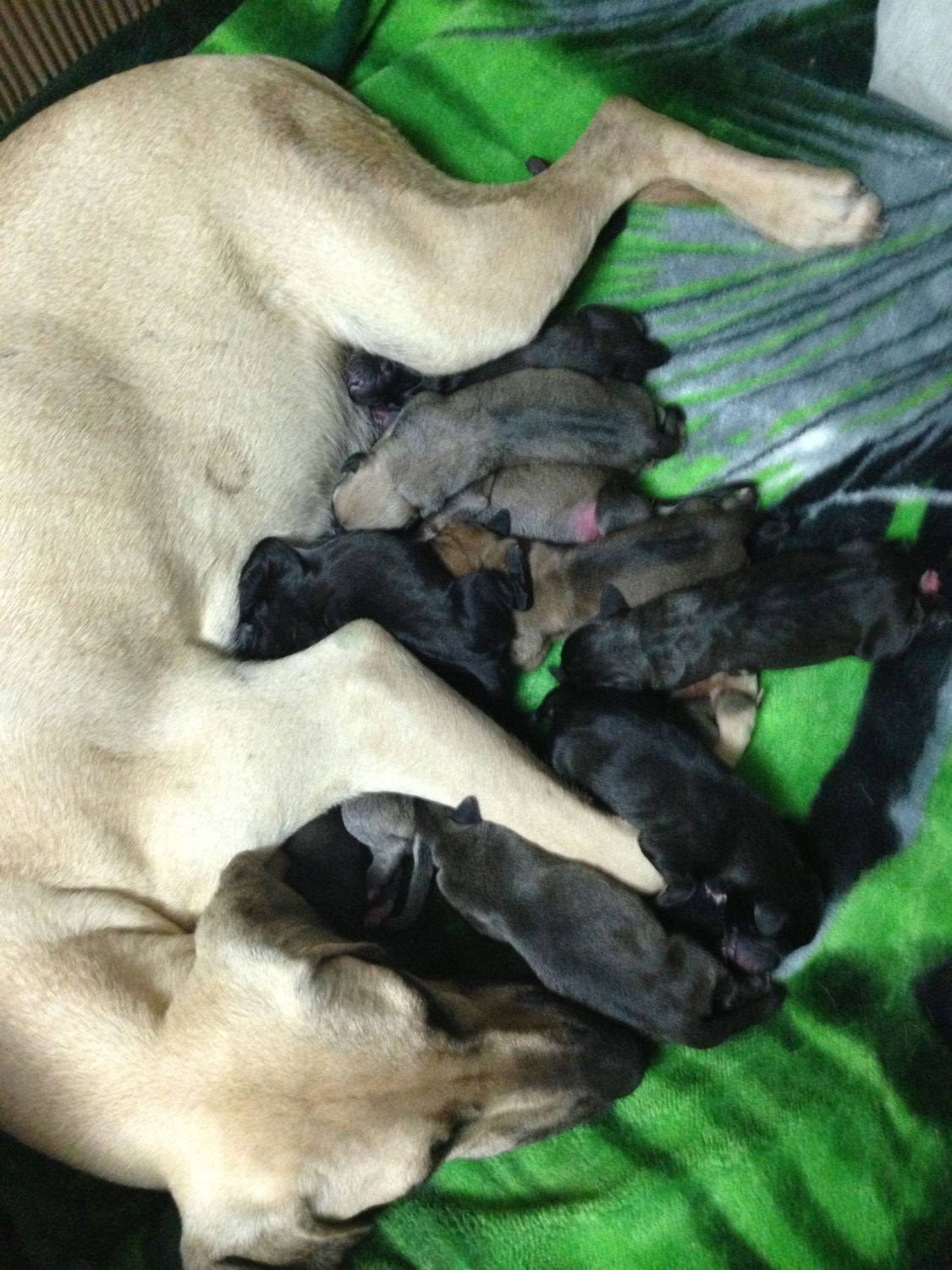 My long awaited breeding of my dogs finally came to fruition today. My Nyla girl welped 12 big fuzzy puppies for me. This is my first time breeding dogs( I've always preferred adopting and training abuse rescues) but I bred two amazing hunting dogs to keep a pup or two to take their spots when they retire. They are remarkable!!!! Oh what a happy home with a fresh baked chicken in the oven, ducks quacking, and puppies grunting into their mommas tummy.