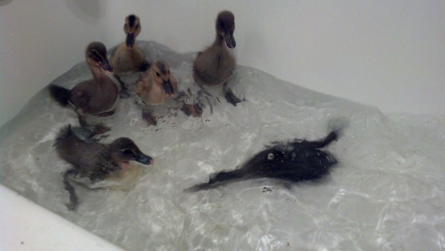 I let them swim in the tub today. Didnt get very many good pics but I did get a couple cute ones. I took a little video too so hopefully I'll be able to get it uploaded soon. Haha the rest are like huuhh?? Oh and I noticed they have feathers starting to come in.