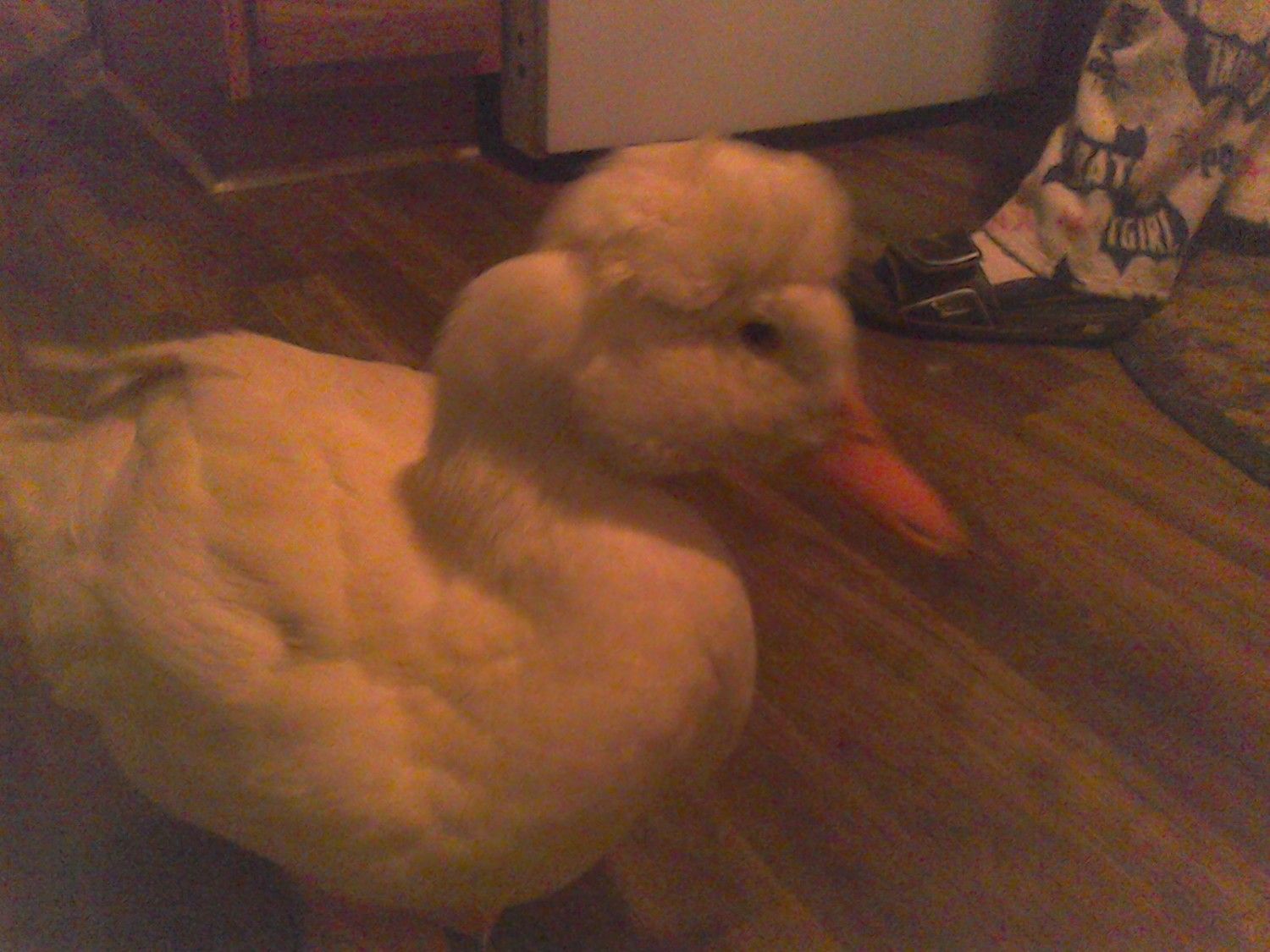Oh, I put my Special needs Pekin Ali into the pool today for about an hour or 2. I turned on her heat lamp and put fresh straw down and got it all warm and cozy for her while she was swimming; then i took her out and put her in her pen... she was happy.