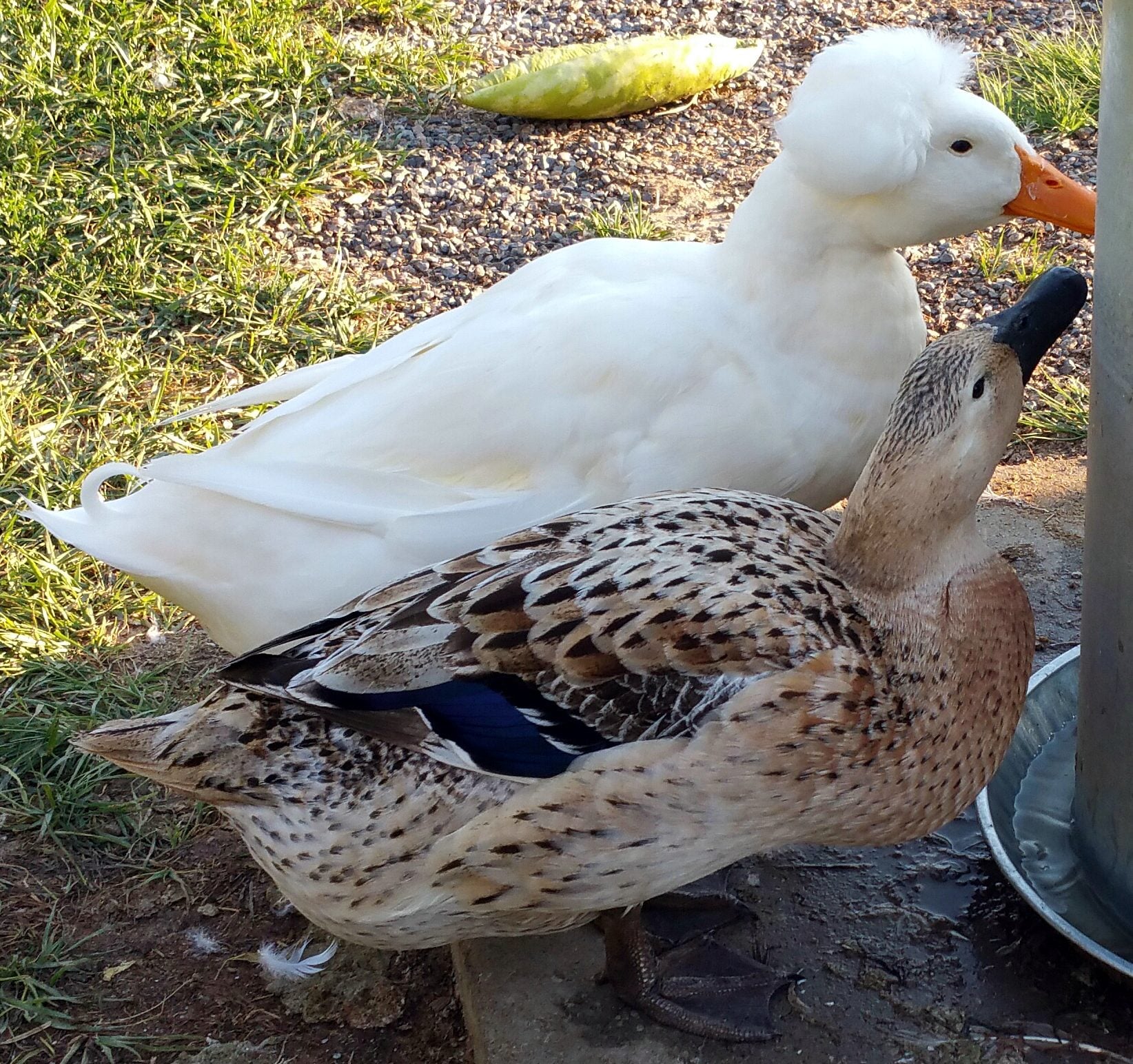 Yup! Their relationship is very un-duck - almost monogamous (Rhiannon does let Kaine mate with her and Tevye and Roxette mate sometimes, but that is it and that is pretty monogamous for ducks) - and they pal around most of the time. We just went out to put them all in 5 minutes ago and Tevye and Rhiannon were off from the rest of the flock (not far) foraging together in the grass. I can only guess how this dynamic formed, but it is very obvious they are the tightest friendship in the flock. Tella and Ettie (older sisters) are probably next followed by Mystique and Noir (younger sisters). The rest of the flock has ducks that get along and don't get along, but nothing even close to these three pairs and Tevye/Rhiannon is the only pair that formed on its own.