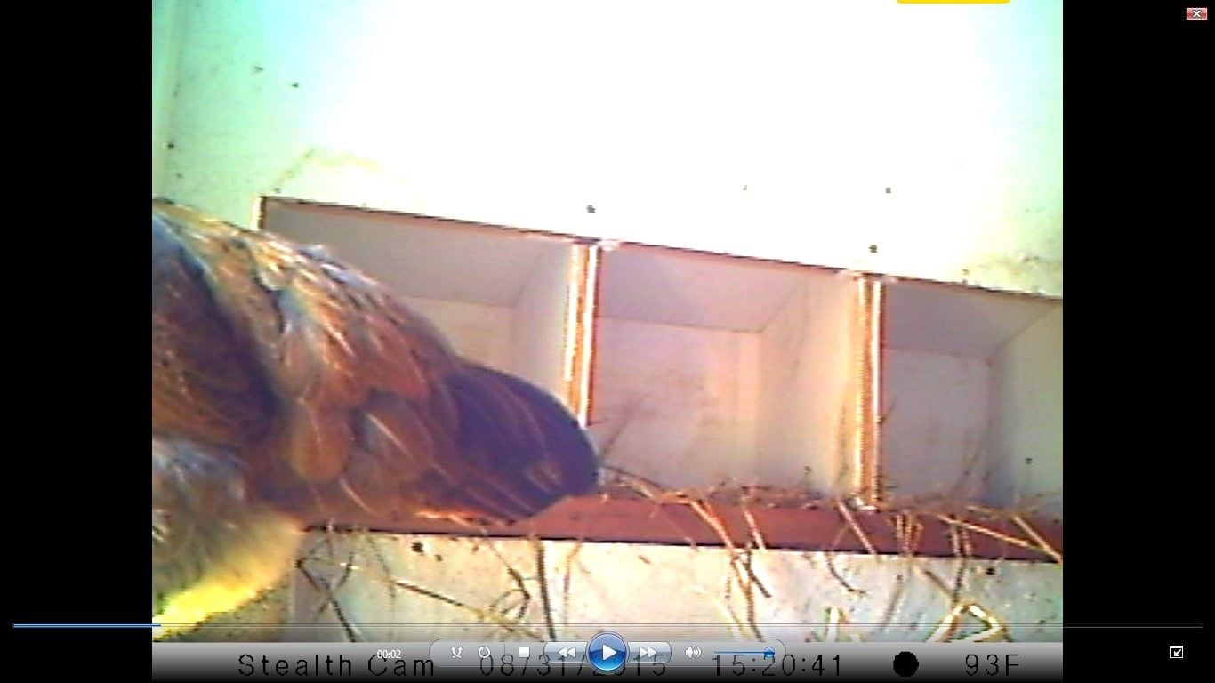 We got them in the second week of April, so these birds are closing in on 6 months of age. Our flock is 3 Buffs, 3 Barred Rocks, 3 Aracaunas (we only ordered 2, so the shipped extra was an Aracauna--that's what Dude is), and 2 ISA Browns (definitely top of the pecking order). Here are the pieces of evidence for and against Dude's sexual identity as a male/female:
