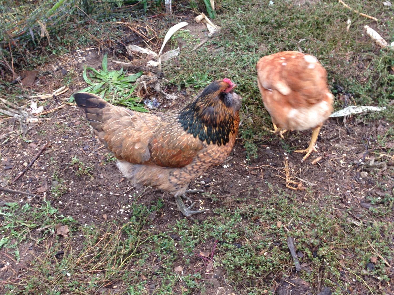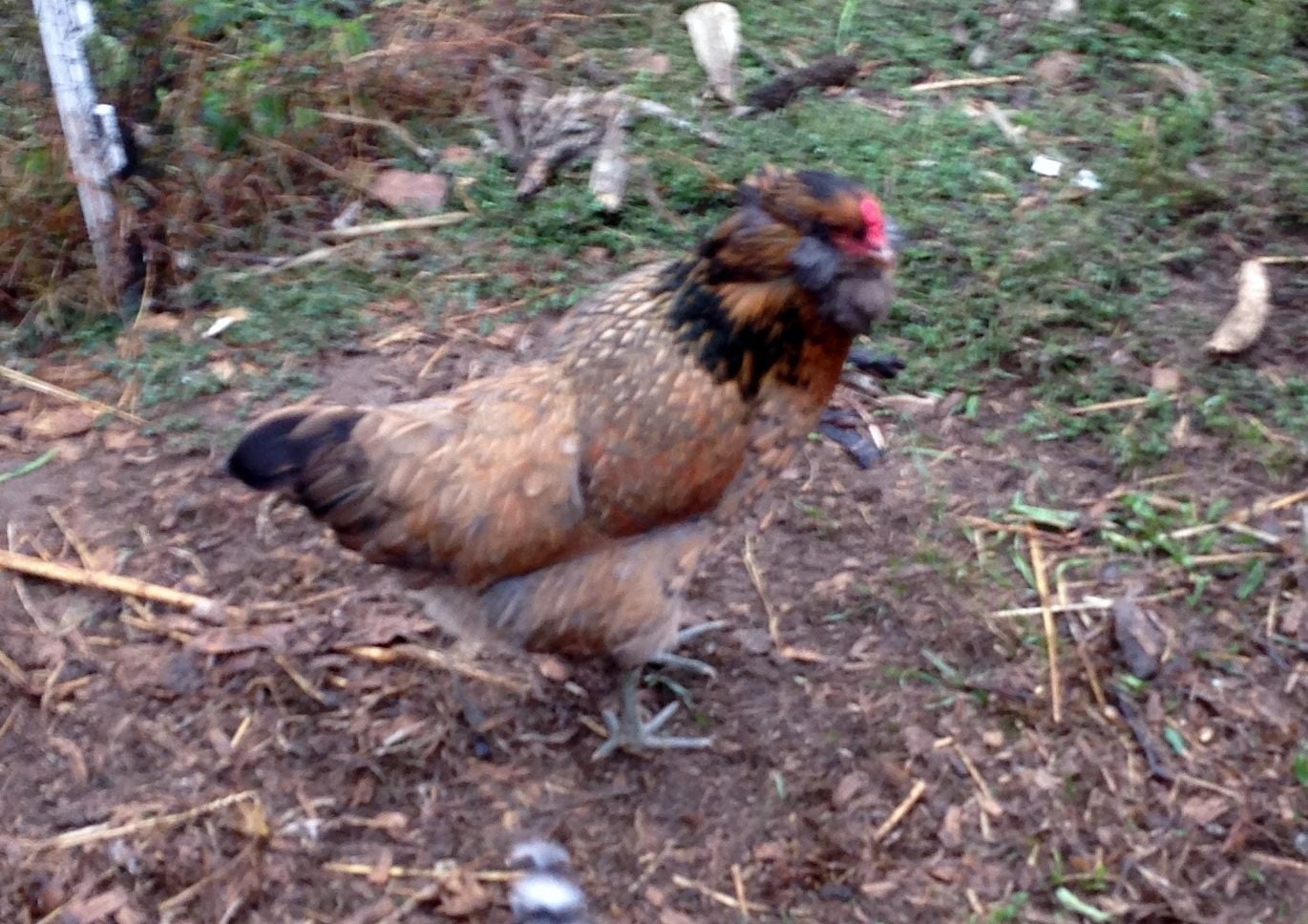 2. Dude initially dominated the group, but now "he" is way low in the pecking order. There are no (other) roos in the flock. We had 2 groups of meat birds this summer, and there were roos in there, but they're long gone. Dude is a lady?
