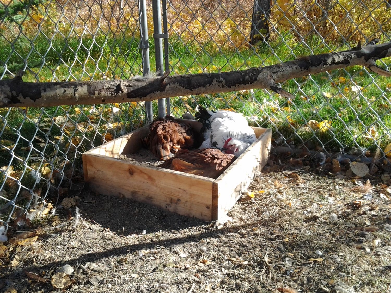 Here is mine. I found some dirt under a deck and used 1/4 inch hardwire to strain out the bigger pieces. The dirt was dry making it ideal. The dirt bath is under a covered area so ideally it will stay dry.