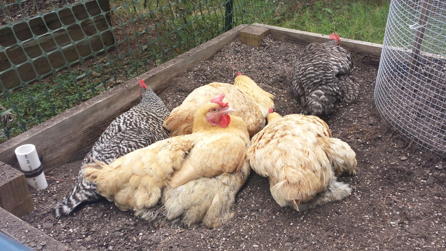 Hi everyone! This is a random question, but I thought you might be able to help. I have three girls: Brahma, Speckled Sussex, and Easter Egger. For the winter when the ground is frozen, I want to buy a container and fill it with dirt/sand for the girls to dust bathe. I'd like all three to fit, because when they were chicks they would step all over each other if one couldn't fit...plus, it seems to be a nice bonding activity. So I have two questions: