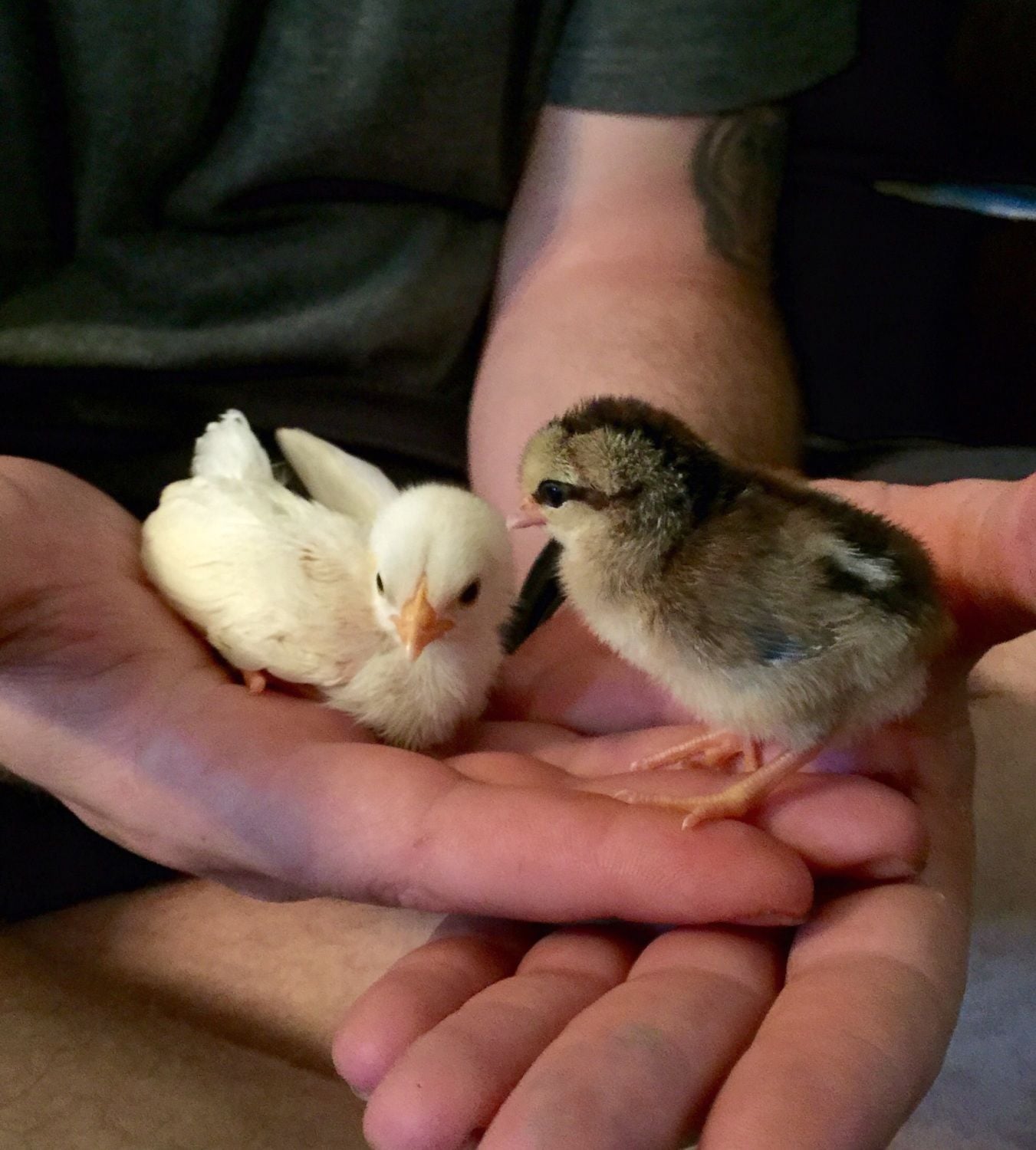 Here they are right after hatch, and next to my white Singleton Serama for comparison.