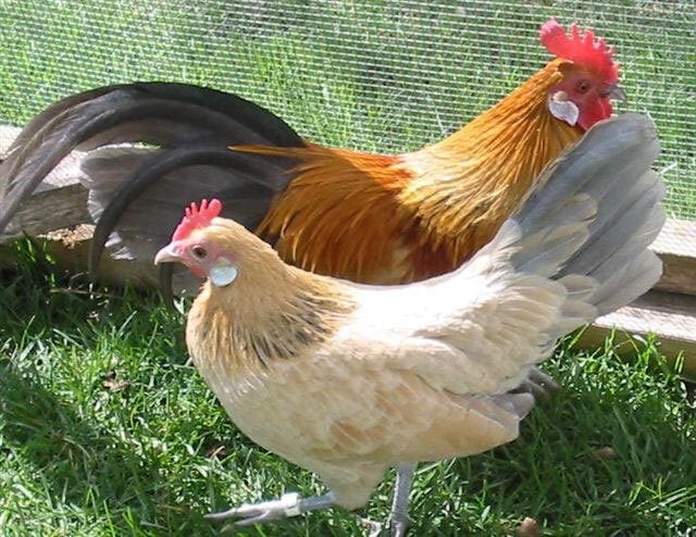 These 2 Blue Buff Columbians are brother/sister and were later, in separate breeding pens, and bred to Buff Columbians for chicks in both varieties.