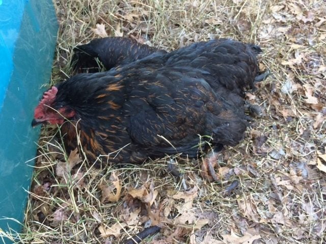 I eventually just let her out into the yard like that, because I didn't know what else to do, where's she's been for the past couple weeks. I don't know if it's just some sort of weird build up from all the poop, but she now is having problems again and is extremely lethargic and just laying on the ground. Here's what it looks like now: