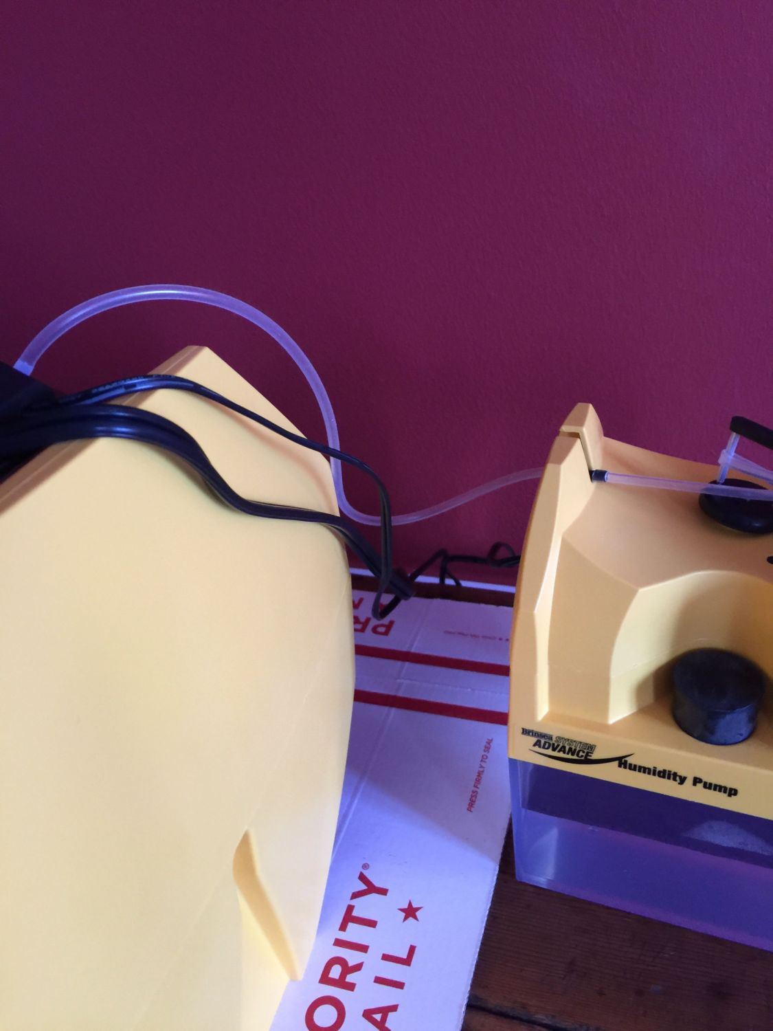 My goodness. I think you are right. I had assumed it was working but thinking about it, I really haven't had to fill the water reservoir at all. I check it daily to make sure there aren't any kinks in the tubes but never thought to look for holes (it's brand new and this is the first time I've used it). As soon as I go home I am going to check it out and will let you know. Hopefully it is an easy fix as described above! I was able to bring up the humidity on the inside but only because I added a couple of small sponges in a small medicine cup. I'd rather rely on the humidity pump though!