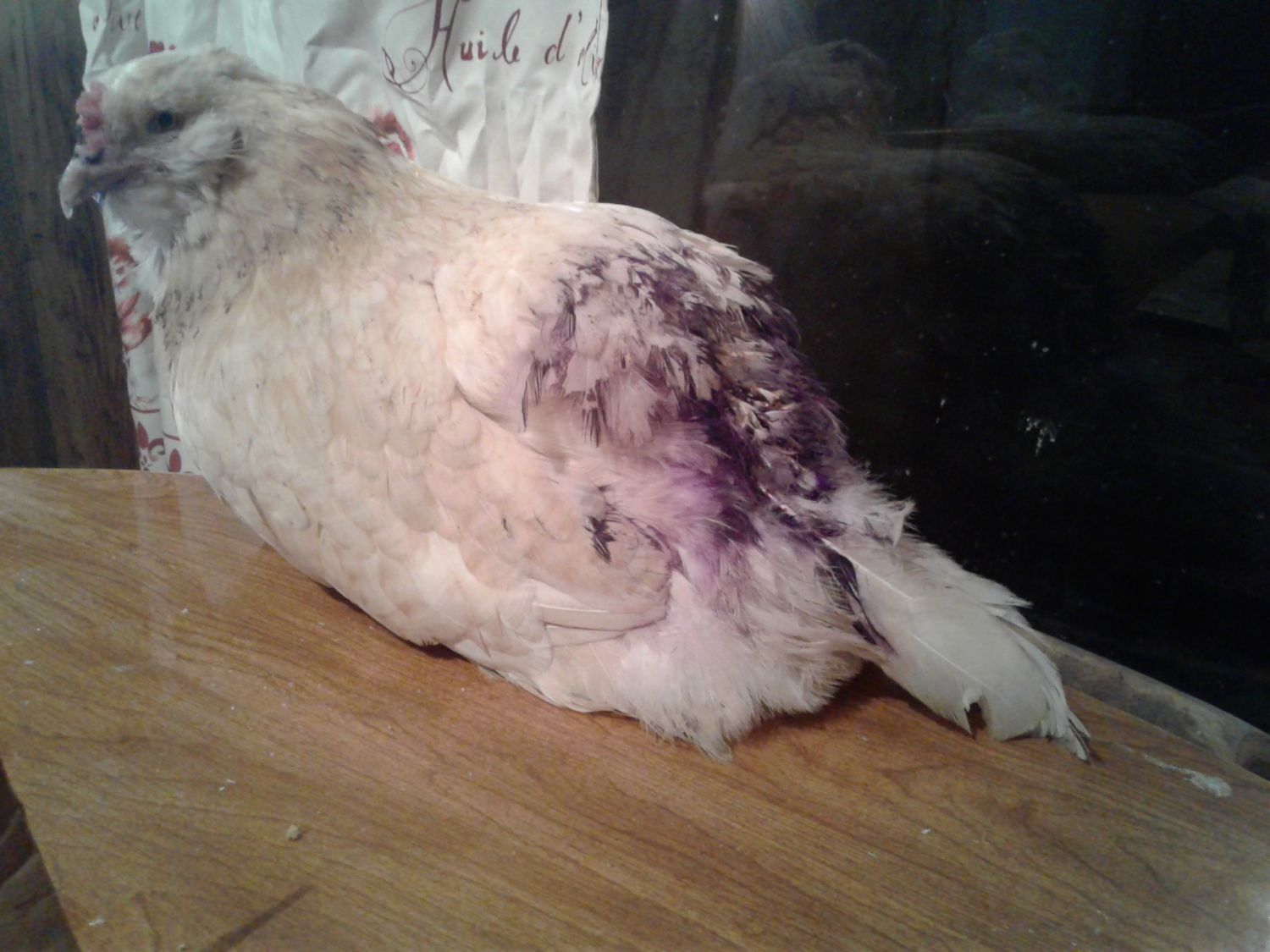 Had to bring one of my new EEs, Hedwig in last night. We opened up the divider wall in coop and let everyone mingle. She was fine almost all day but when I went in at night she had some more feathers pulled out and was bleeding. Can't get overwhat a sweetheart she is and talks to me nonstop lol