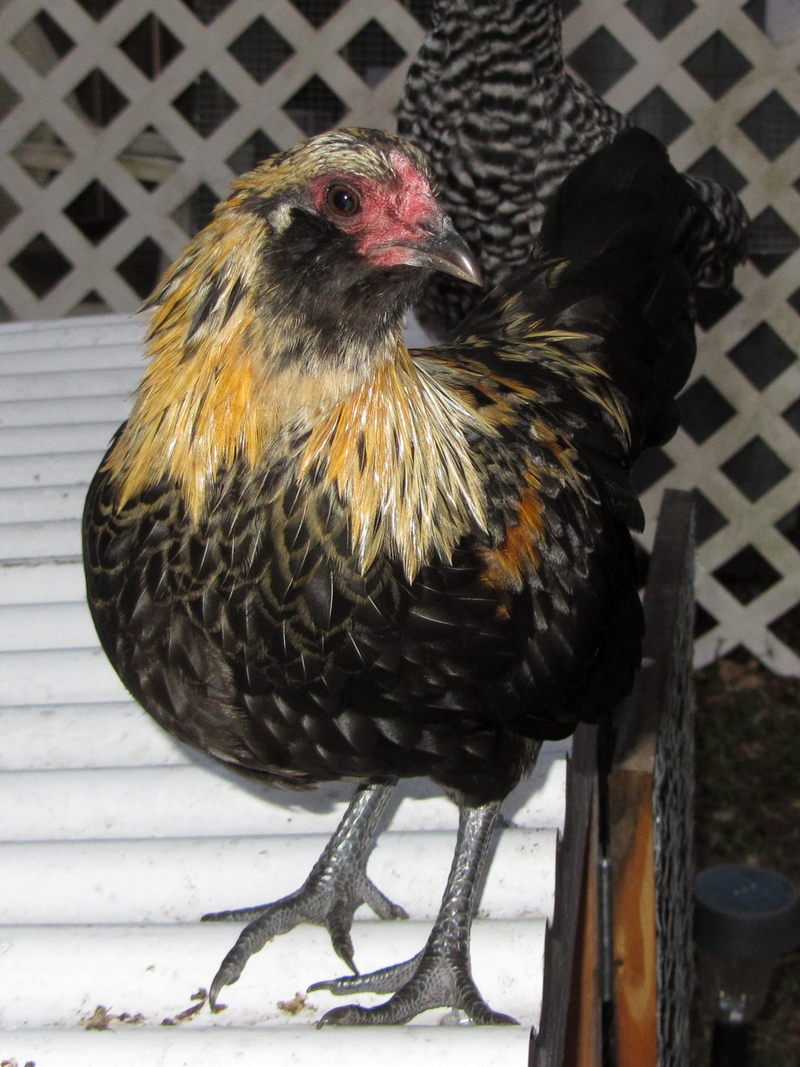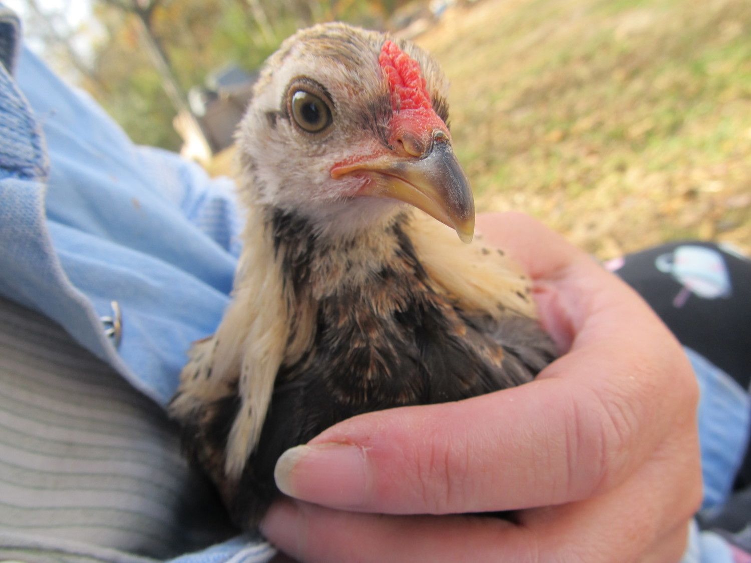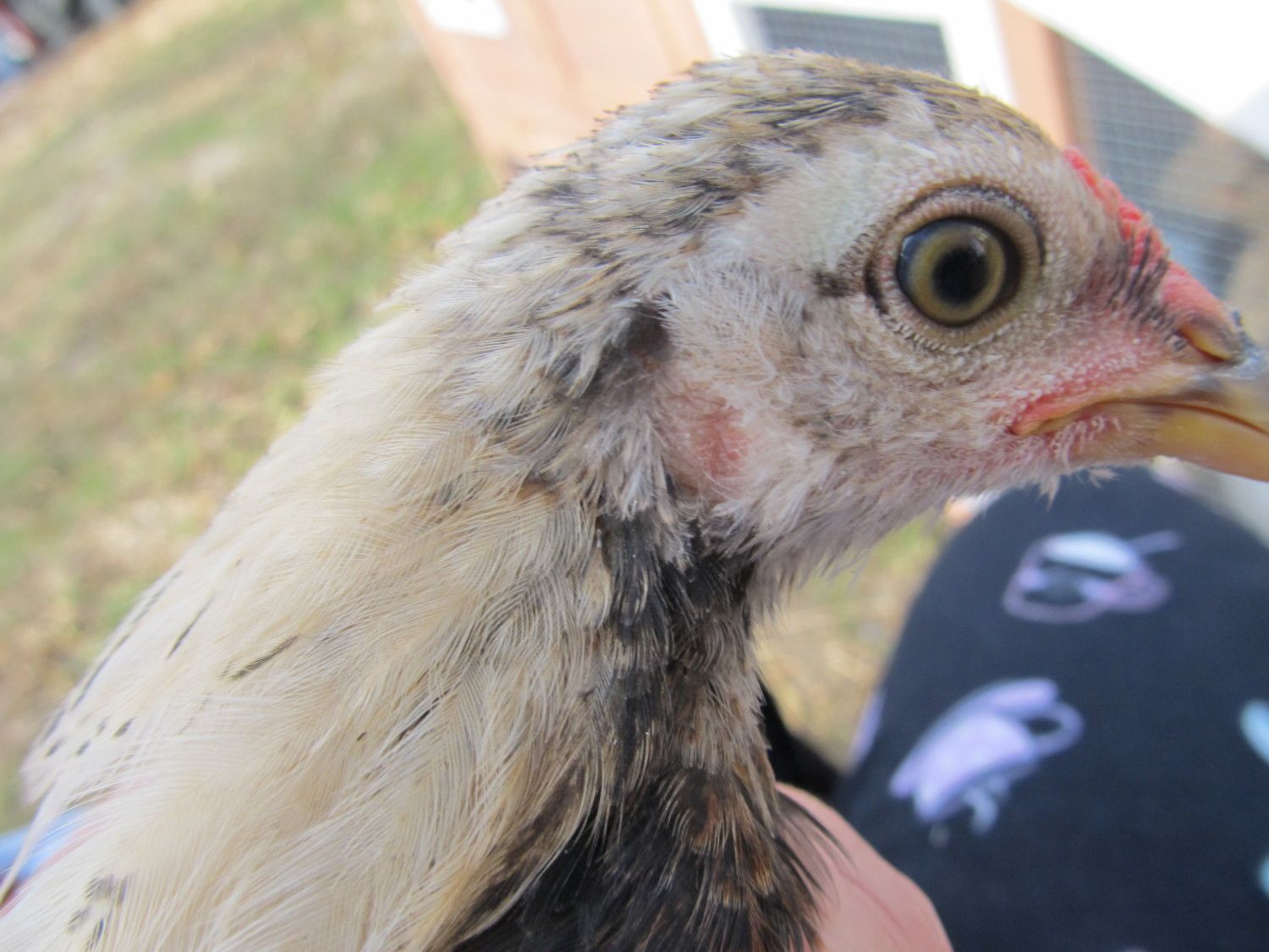 He's grown a lot in the last week. These are the first pics I've taken of him this week. What a big boy, huh?He loves Dottie to pieces. Hang on and I'll go get a few pics of him. The breeder had lots of different breeds. Each had their own section. He shows them. But lots of people on the Ameraucana and Arucana (he breeds both) threads said that he is an EE.