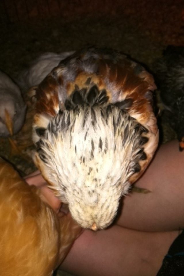 Your Thelma and Louise look just like our Rinn and Benct. Rinn started out solid blue with a rusty orange patch on her head. Benct started out a very dark dark cocoa brown marbled color. Now they look alike except Rinn has a good bit less of the copper color and kept the rusty spot on top of her head.Well, I thought I had Ameraucanas, but turns out they are all Easter eggers. Which