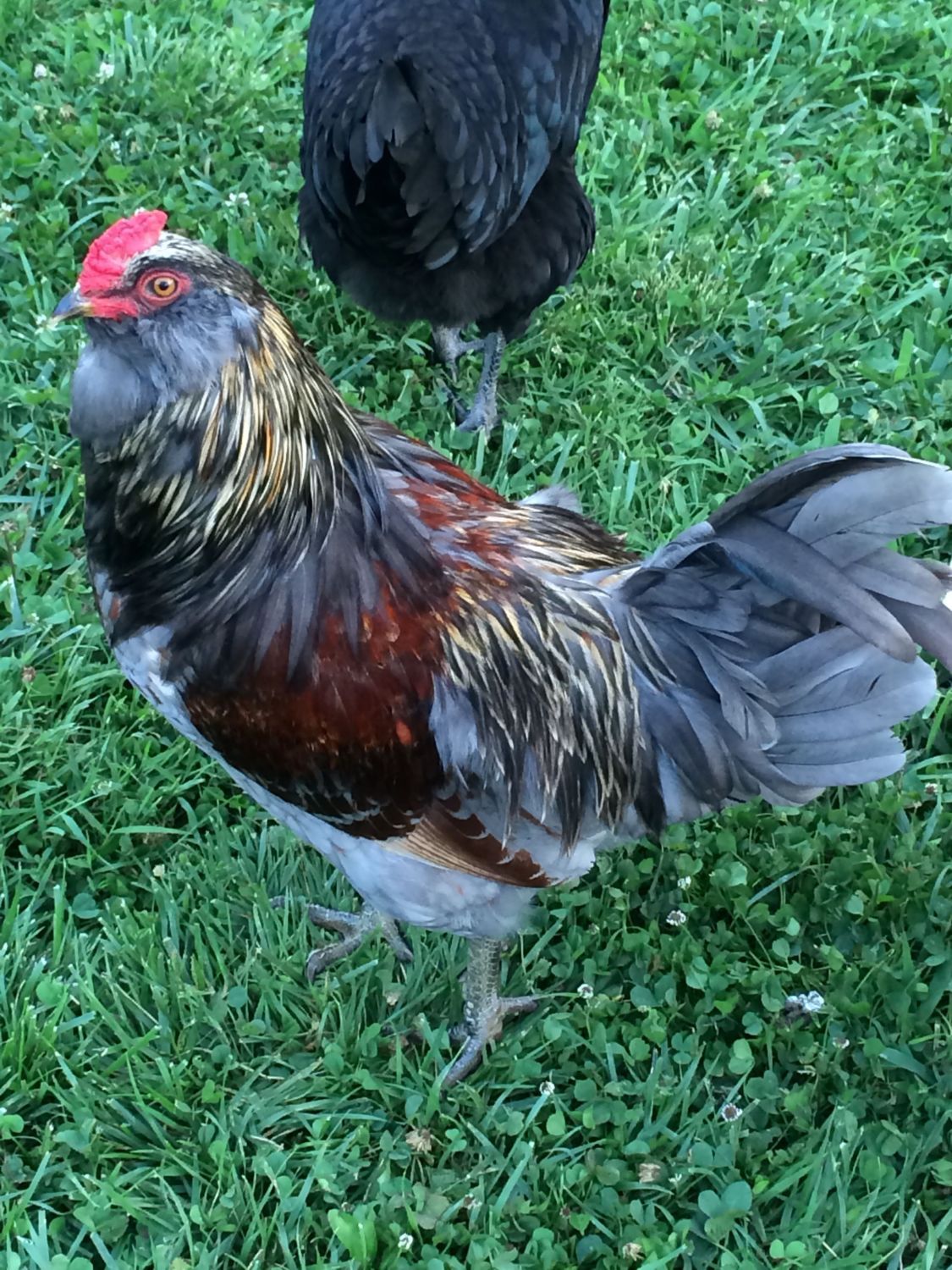 Also, 2x for the pix request to CluckCluck's Chip, the bantam roo, as he matures. He is already a looker with all that silver.