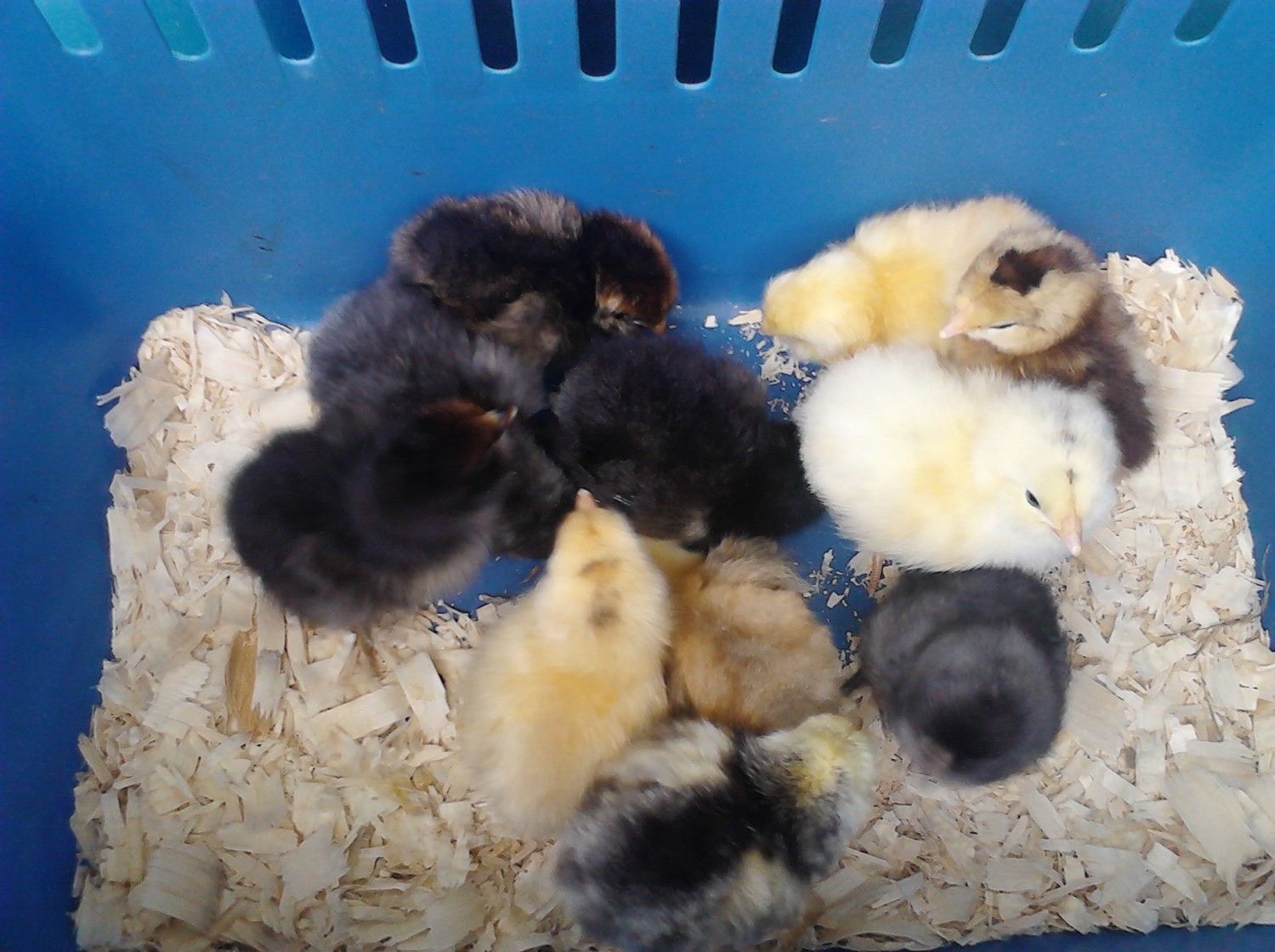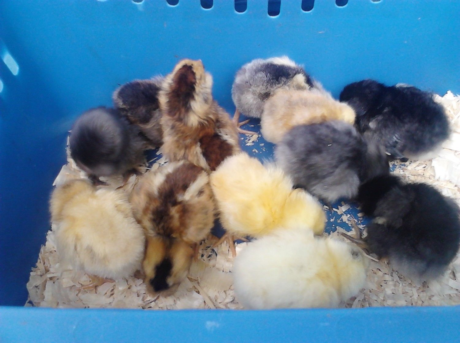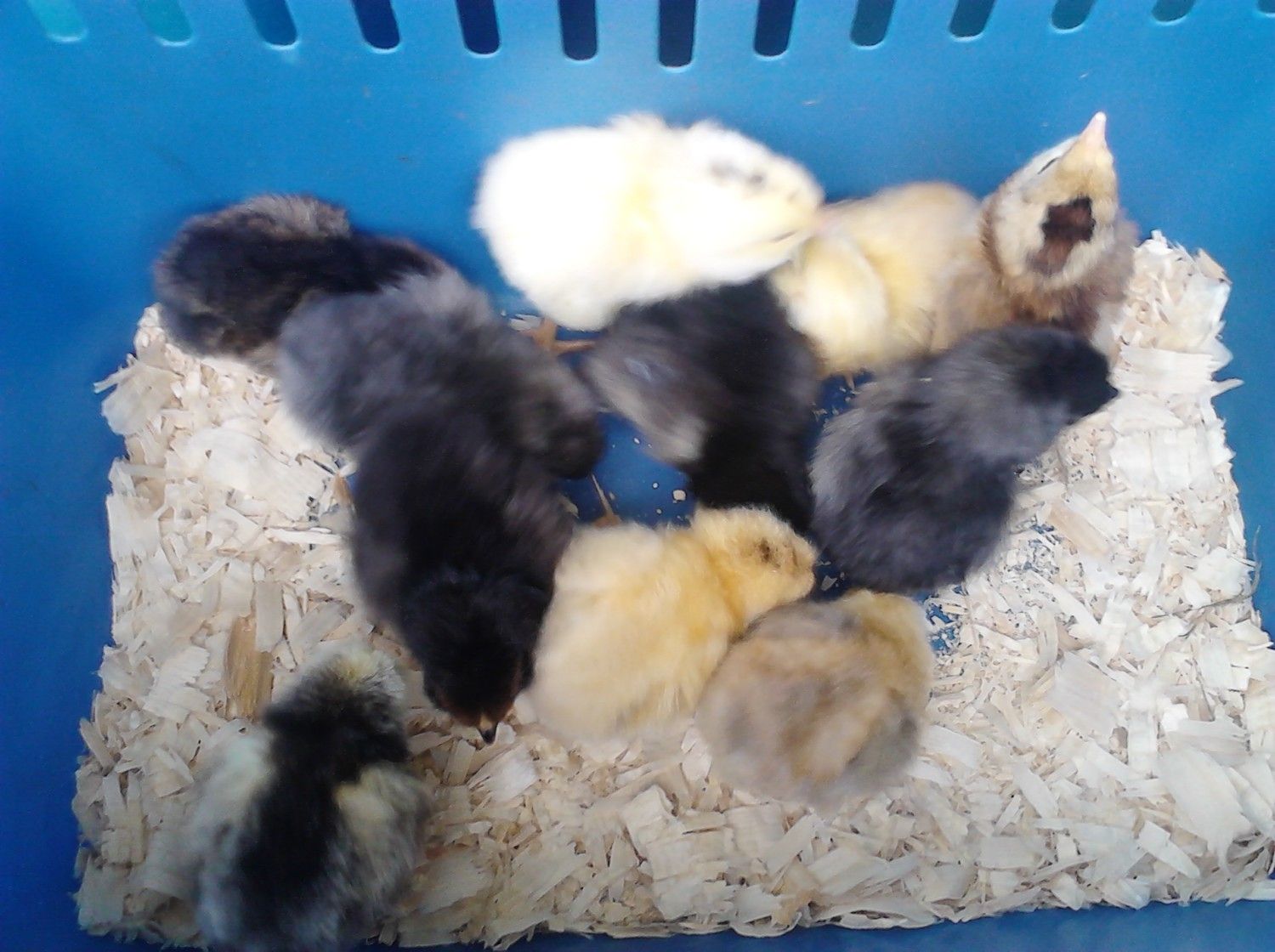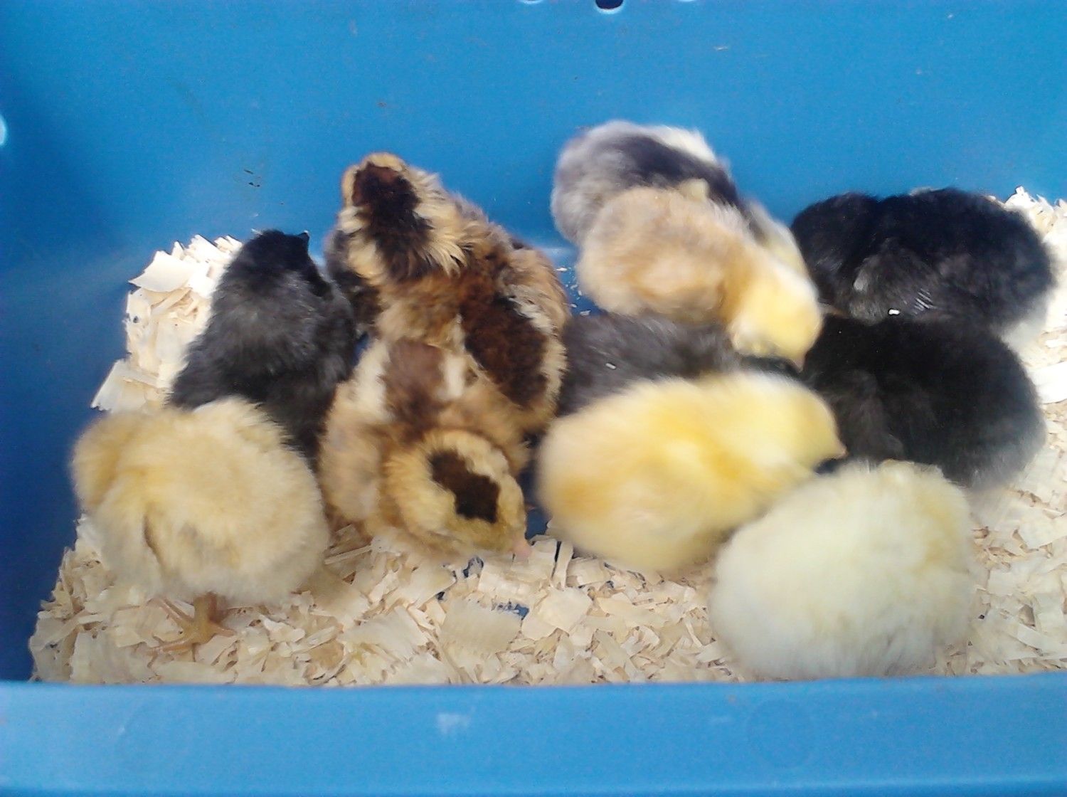 I took some new pics of our chickies they had changed so much over a weeks time the frizzle can even fly out of their box now.