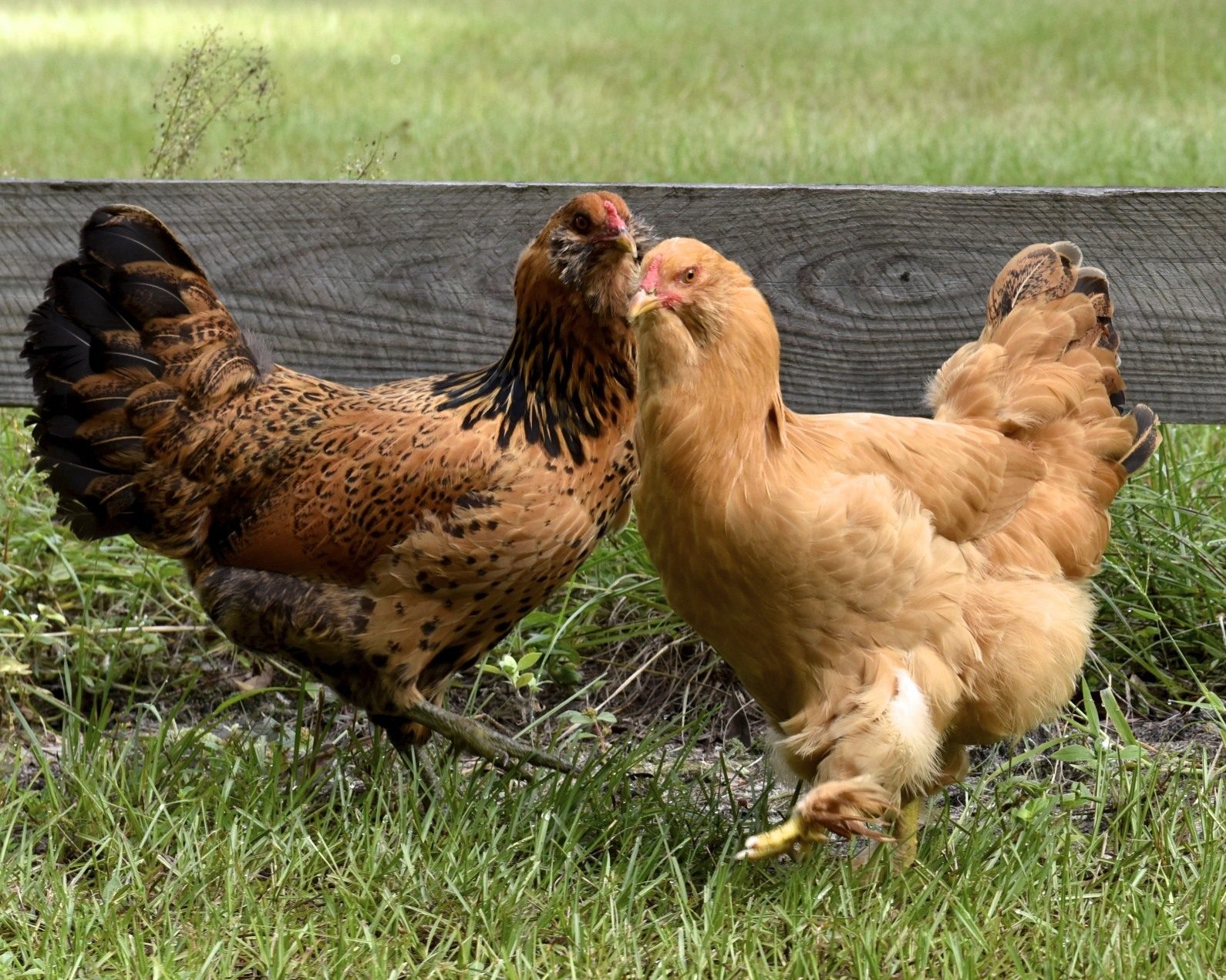 . Jessy has round saddle feathers unlike the gold bird Mr. Gold. He has pointed saddle feathers.