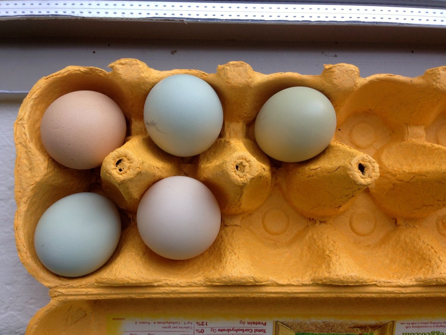 Those are so pretty! 6 of mine I just got will be 24 weeks tomorrow, but I don't think it'll be that soon for mine.I am getting eggs from all 3 of my EE's now. They all started just after 24 weeks. Beauty lays a more muted Green Blue Egg and BlackBeard and HellRaiser both lay a more blue egg. So exciting to have all 3 laying. I have 1 Buff Orpington laying as well but my other Buff's, my Speckled Sussex, and my New Hampshire reds are still not laying. So I would recommend EE hens to anyone! They were my first to lay and even though they just started, they are laying every other day!!!![]()