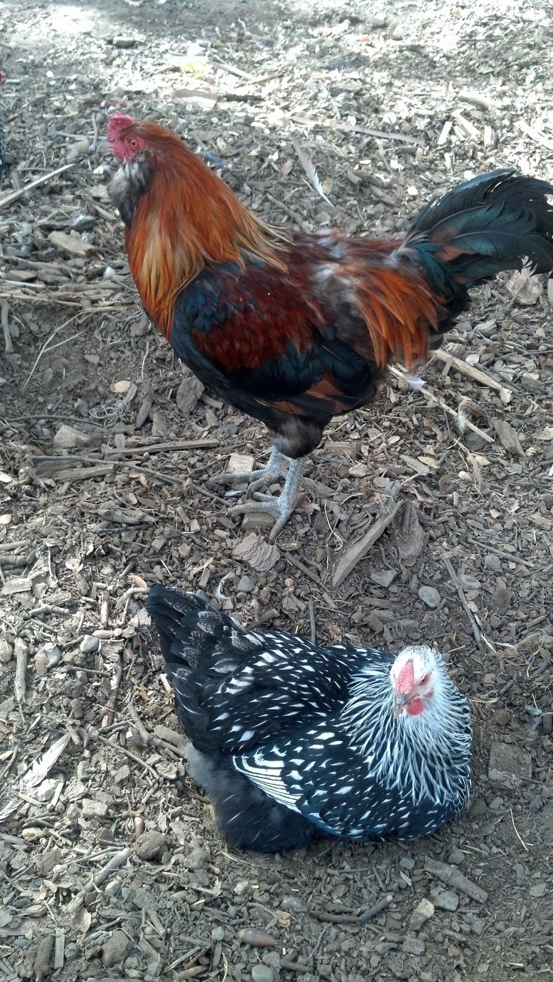 here he is with one of the dottes I mentioned. Got a lot of buff pullets this year from him along with two red shouldered cockerals and the two other lace chested ones.