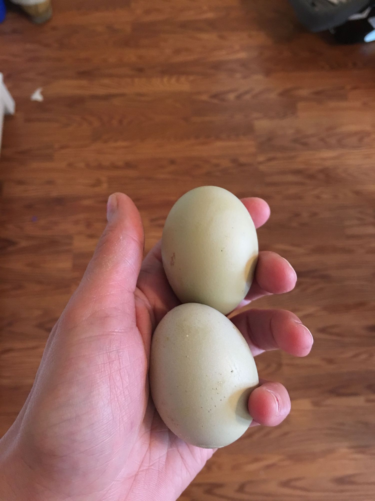 You know, I could have sworn the hen who layed the light blue egg in my pic layed darker eggs before...so this concept is interesting!All four of mine lay different shades of eggs and in fact they vary by day too.the blue are from one hen on two different days. The green are from another on two different days.![]()