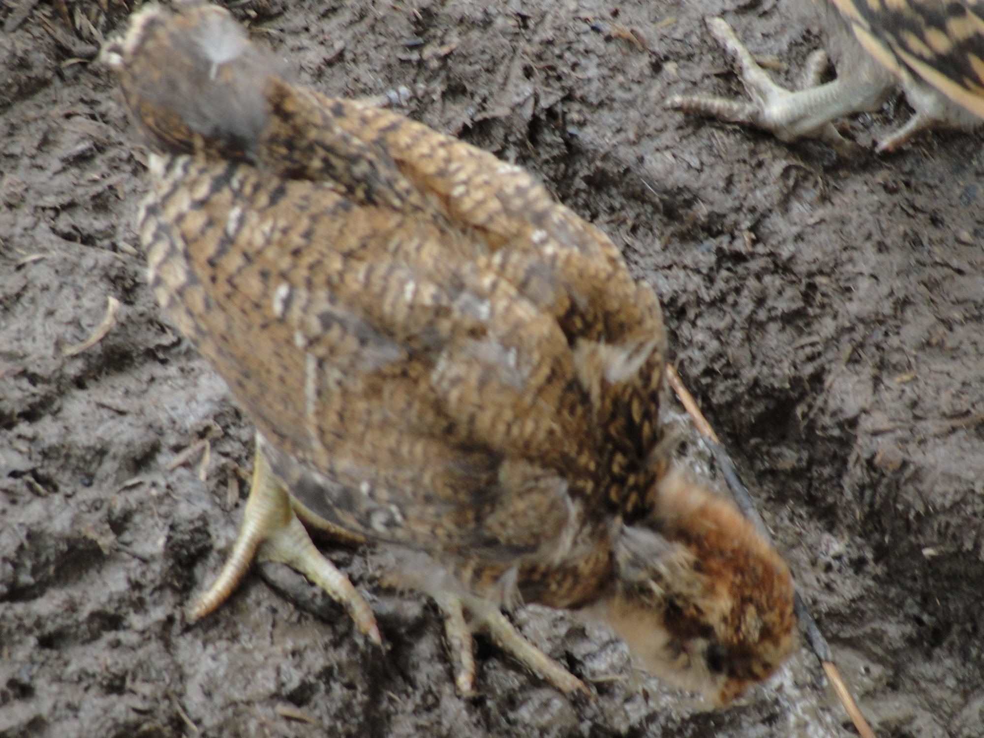 We have 4 EE's. 2 are 7 months old, Cluck and Swainson. We also have 2 chicks. I think they are about 1 1/2 weeks old now. This is Ginger. This is Chiquita. We are dying to know what they are going to look like. Any ideas?