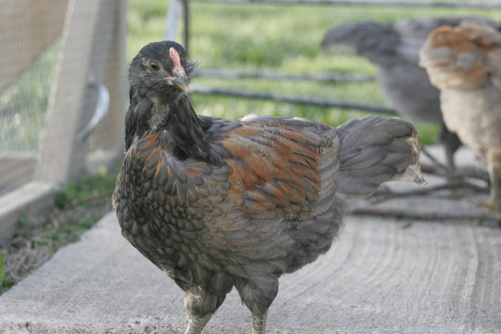 I'm so worried my Molly is a rooster.... Her comb is a little bigger than the others but not really been anything but pink. This is my friendliest chicken and loves me, comes and climbs up on my shoulder all the time. Just worried about getting a mean one really, I don't think there is anything against having them around here. My coworker that has two roo's in her bunch and their combs are very evident but with mine being an EE I'm just worried. This is all my girls, it's only a small bit larger that the other ones. (the one in question on the left).