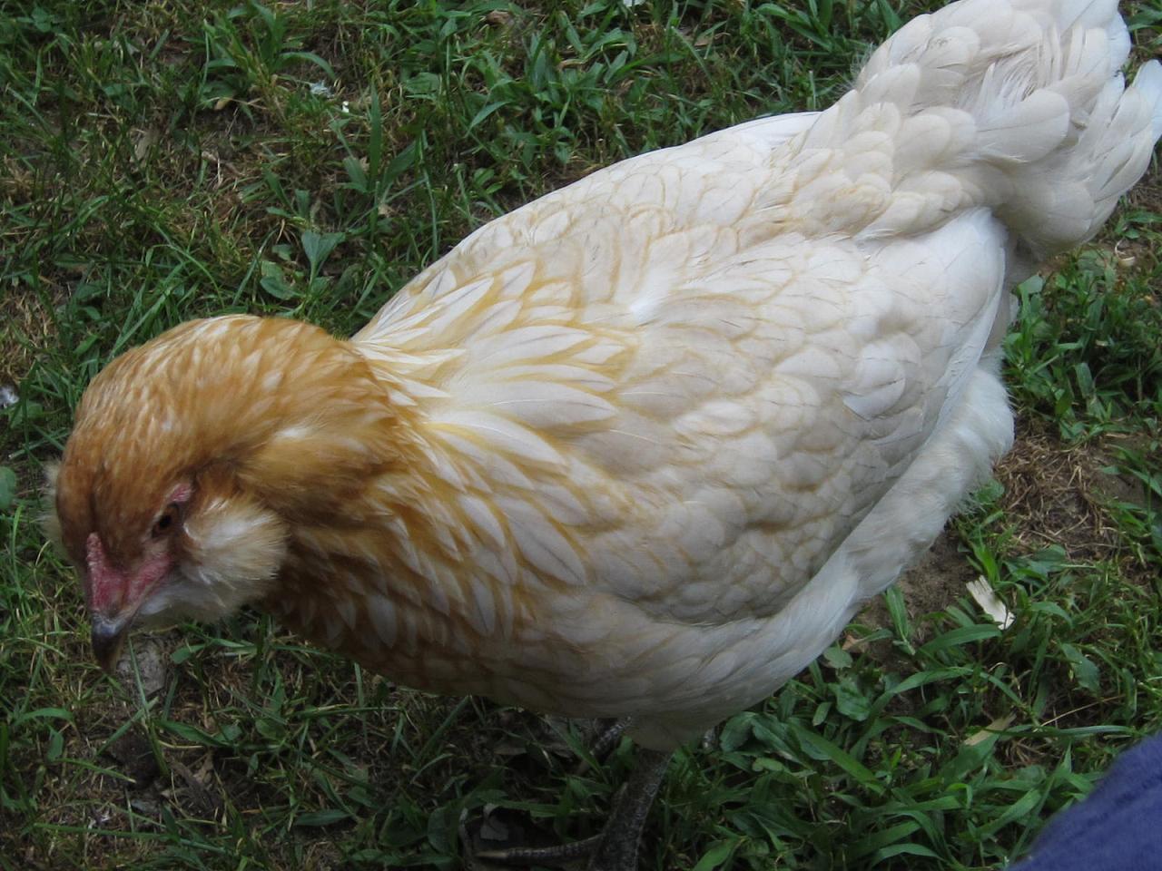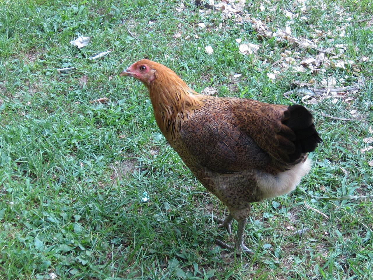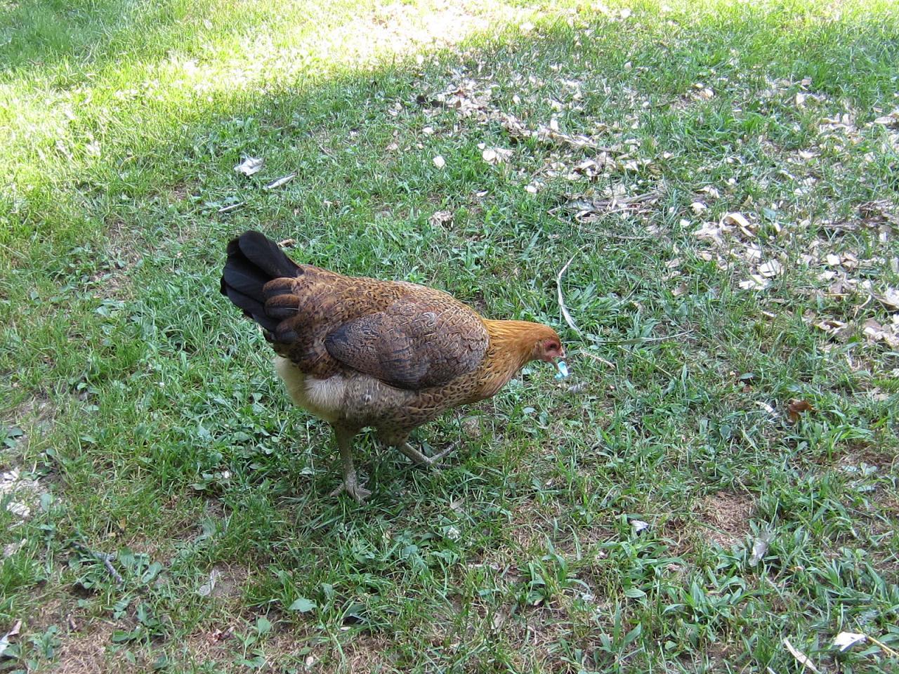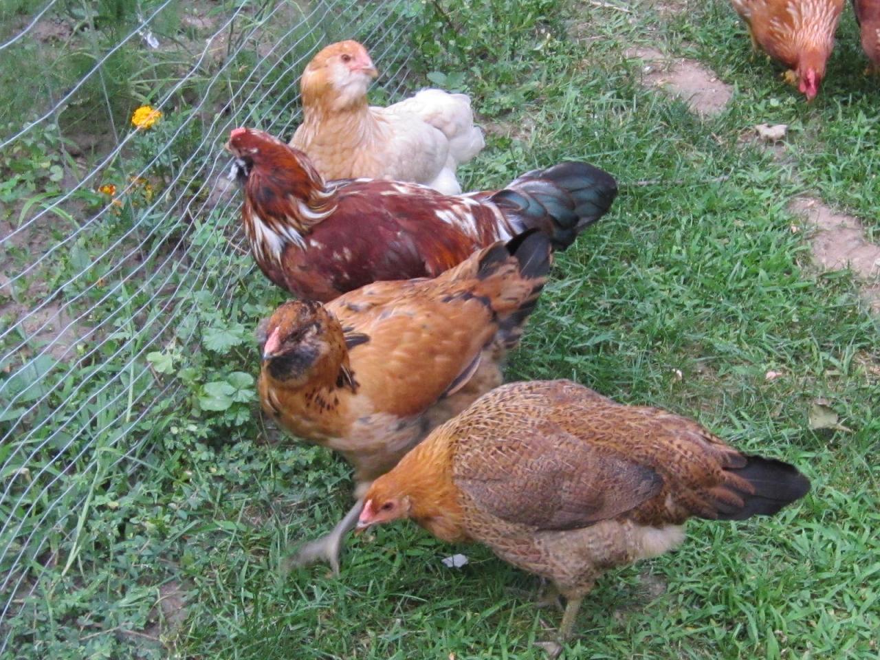 I have a Easter Egger named Hawk. Her other name is Goose because when she clucks she sounds just like a goose. She is the second chicken in the picture.