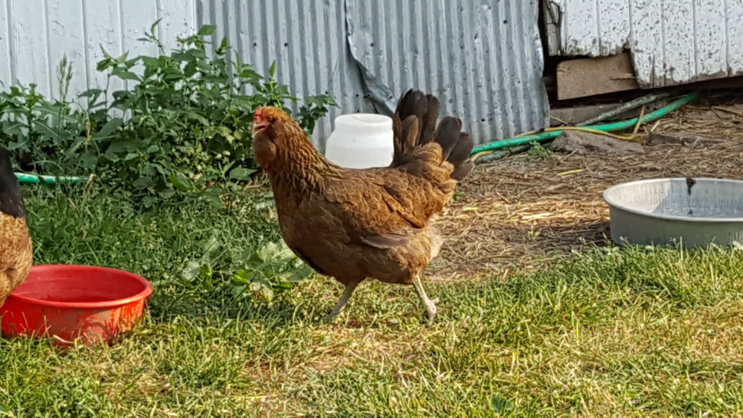 This is Cozma, she is a nut. She enjoys laying her eggs in an old shed i have shut up. She manages to find a way in and then getting herself trapped. She is the hardest bird to catch. I currently have a predator problem and do am insisting everyone roost in the secure brooder room for the night. All my hens dislike this arrangement, Cozma throws a fit. Last night I couldn't catch her and had to risk her to the racoon. Fortunatly he did not come.