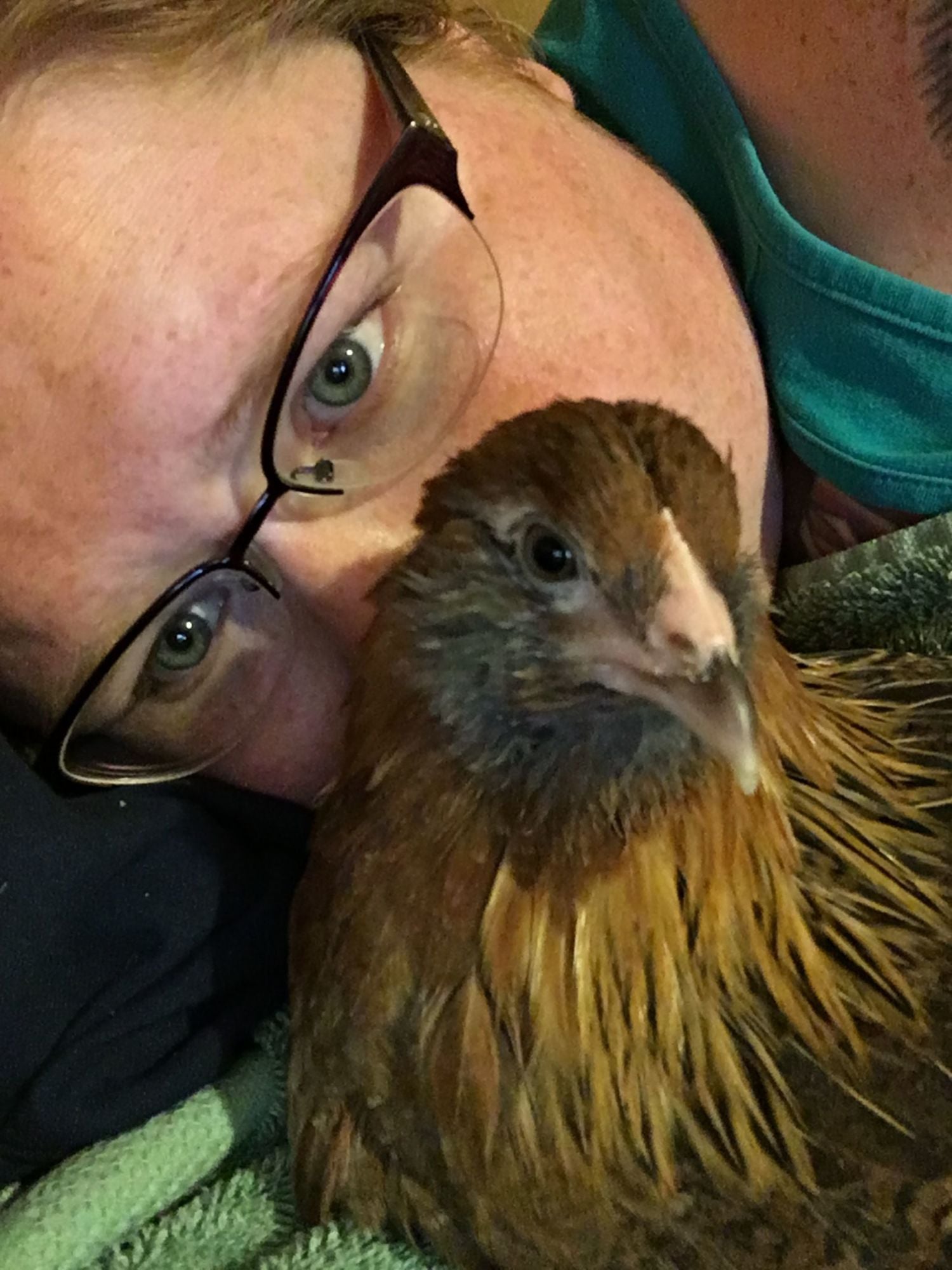I know it is so crazy she's a grown lady now! She's really good at it and loves to cuddle so does JonThere is no way that big beautiful pullet is Sansa. Where'd all the fluff go!?