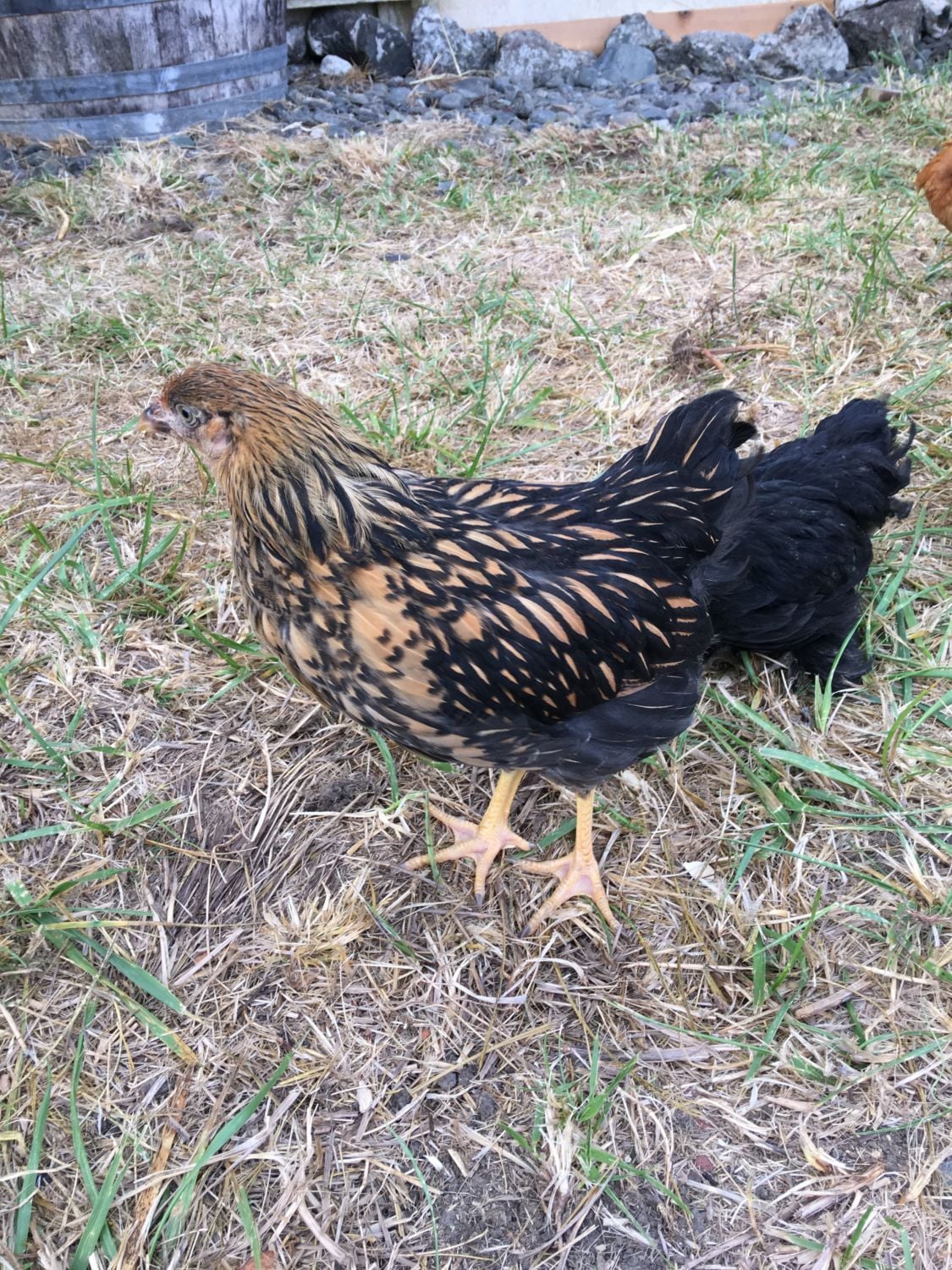 Crook Neck - she is are special little lady because she had wry neck as a chick. She still struggles sometimes when looking up at the roost, but for the most part you can't tell she had it.