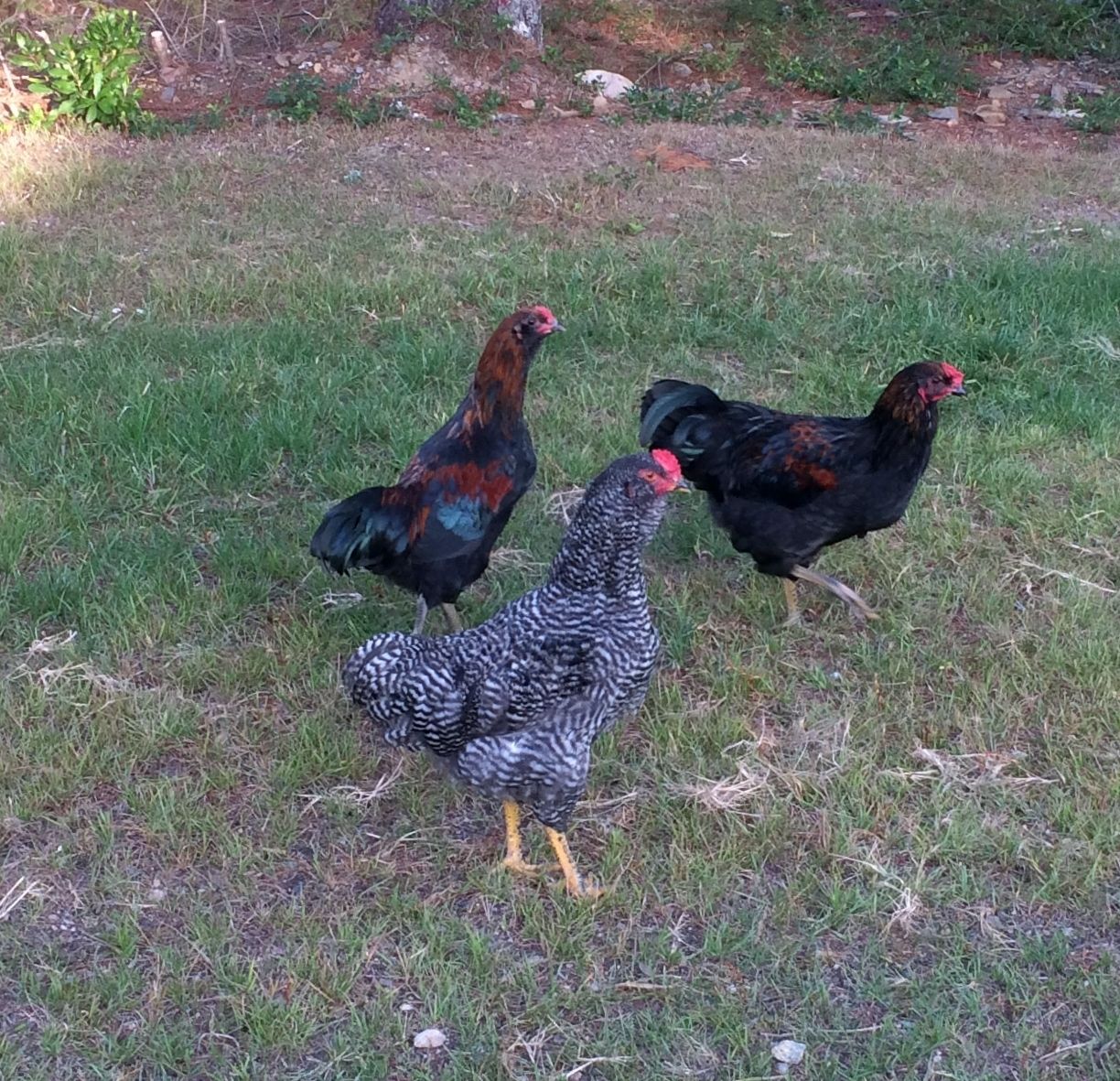Are you sure that barred one is an EE? Those bright yellow legs don't look very Easter Egger-ish. Although there does look to be a hint of a beard. :/